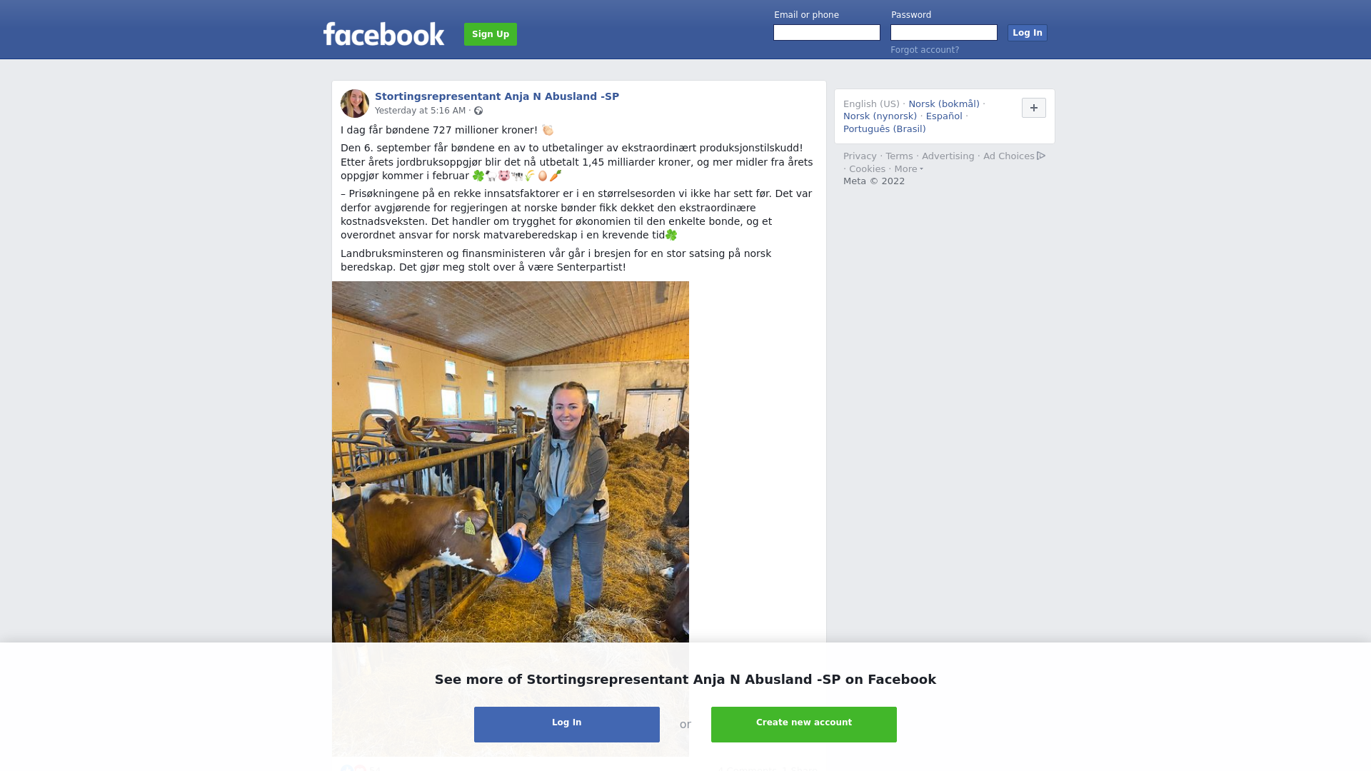I dag får bøndene 727 millioner kroner! 👏🏻\n\nDen 6. september får bøndene en av to utbetalinger av ekstraordinært produksjonstilskudd! Etter årets jordbruksoppgjør blir det nå utbetalt 1,45 milliarder kroner, og mer midler fra årets oppgjør kommer i februar 🍀🐑🐷🐄🌾🥚🥕\n\n– Prisøkningene på en rekke innsatsfaktorer er i en størrelsesorden vi ikke har sett før. Det var derfor avgjørende for regjeringen at norske bønder fikk dekket den ekstraordinære kostnadsveksten. Det handler om trygghet for økonomien til den enkelte bonde, og et overordnet ansvar for norsk matvareberedskap i en krevende tid🍀\n\nLandbruksminsteren og finansministeren vår går i bresjen for en stor satsing på norsk beredskap. Det gjør meg stolt over å være Senterpartist!
