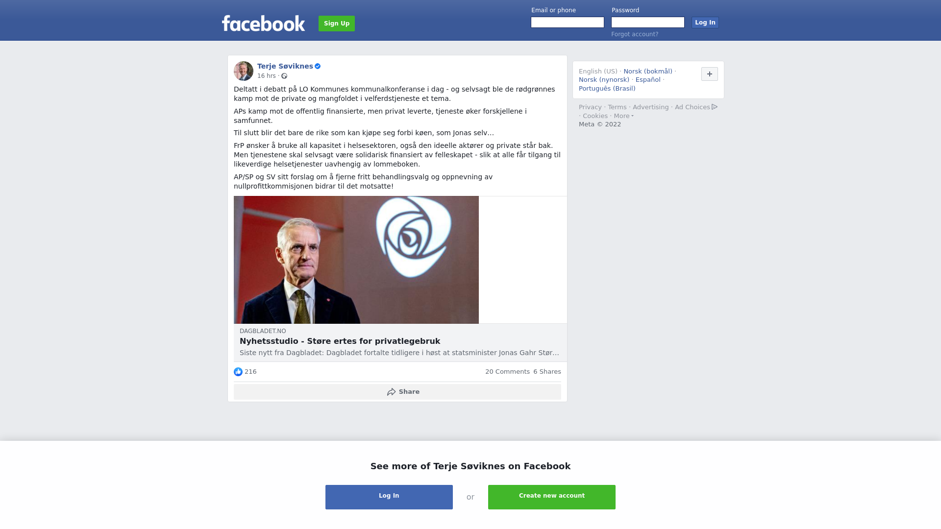 Deltatt i debatt på LO Kommunes kommunalkonferanse i dag - og selvsagt ble de rødgrønnes kamp mot de private og mangfoldet i velferdstjeneste et tema. \n\nAPs kamp mot de offentlig finansierte, men privat leverte, tjeneste øker forskjellene i samfunnet. \n\nTil slutt blir det bare de rike som kan kjøpe seg forbi køen, som Jonas selv… \n\nFrP ønsker å bruke all kapasitet i helsesektoren, også den ideelle aktører og private står bak. Men tjenestene skal selvsagt være solidarisk finansiert av felleskapet - slik at alle får tilgang til likeverdige helsetjenester uavhengig av lommeboken. \n\nAP/SP og SV sitt forslag om å fjerne fritt behandlingsvalg og oppnevning av nullprofittkommisjonen bidrar til det motsatte!