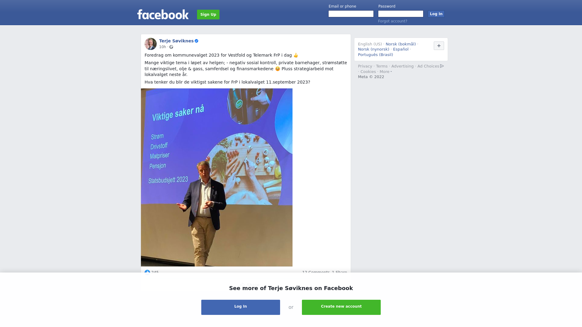 Foredrag om kommunevalget 2023 for Vestfold og Telemark FrP i dag 👍 \n\nMange viktige tema i løpet av helgen; - negativ sosial kontroll, private barnehager, strømstøtte til næringslivet, olje & gass, samferdsel og finansmarkedene 😊 Pluss strategiarbeid mot lokalvalget neste år.\n\nHva tenker du blir de viktigst sakene for FrP i lokalvalget 11.september 2023?