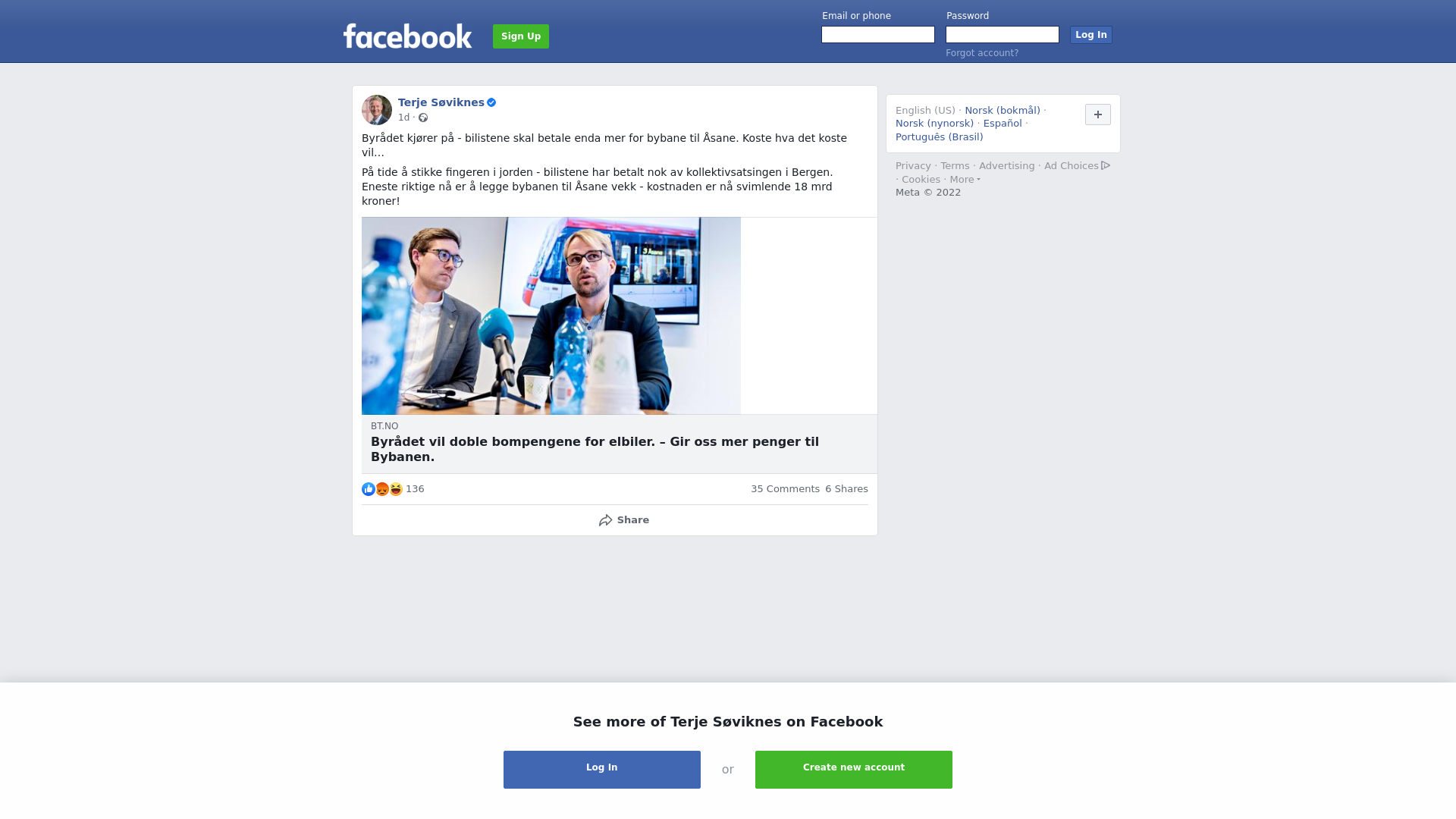 Byrådet kjører på - bilistene skal betale enda mer for bybane til Åsane. Koste hva det koste vil… \n\nPå tide å stikke fingeren i jorden - bilistene har betalt nok av kollektivsatsingen i Bergen. Eneste riktige nå er å legge bybanen til Åsane vekk - kostnaden er nå svimlende 18 mrd kroner!