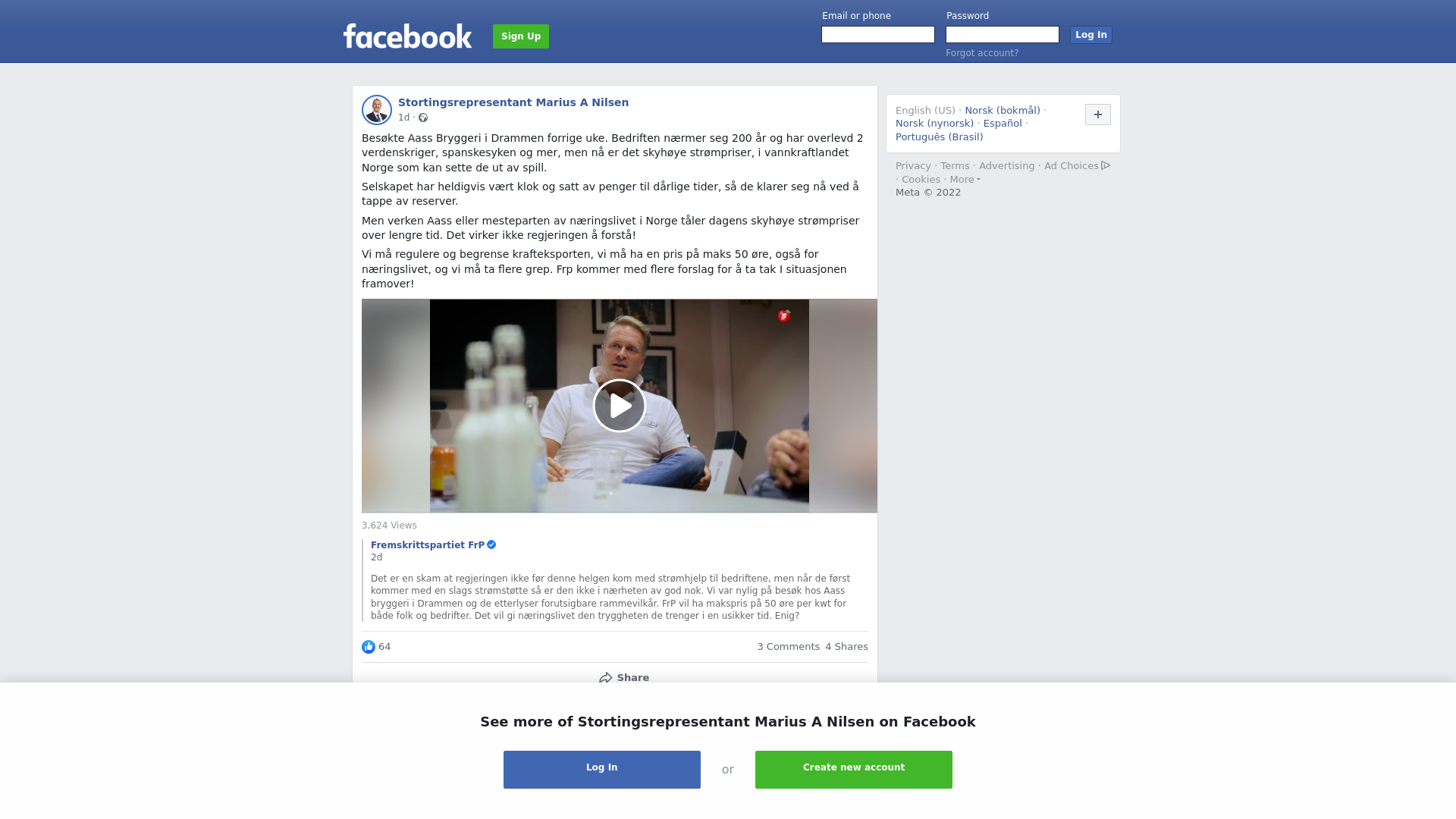 Besøkte Aass Bryggeri i Drammen forrige uke. Bedriften nærmer seg 200 år og har overlevd 2 verdenskriger, spanskesyken og mer, men nå er det skyhøye strømpriser, i vannkraftlandet Norge som kan sette de ut av spill.\n\nSelskapet har heldigvis vært klok og satt av penger til dårlige tider, så de klarer seg nå ved å tappe av reserver. \n\nMen verken Aass eller mesteparten av næringslivet i Norge tåler dagens skyhøye strømpriser over lengre tid. Det virker ikke regjeringen å forstå!\n\nVi må regulere og begrense krafteksporten, vi må ha en pris på maks 50 øre, også for næringslivet, og vi må ta flere grep. Frp kommer med flere forslag for å ta tak I situasjonen framover!