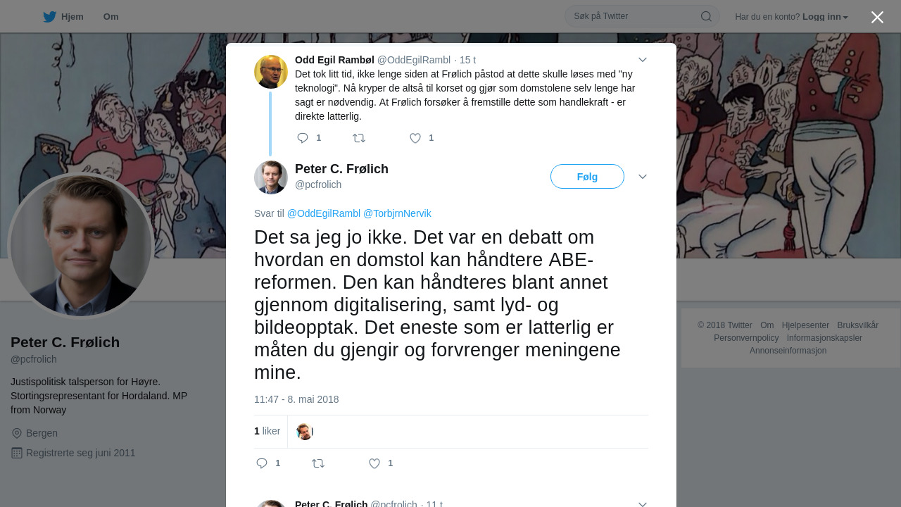 @OddEgilRambl @TorbjrnNervik Det sa jeg jo ikke. Det var en debatt om hvordan en domstol kan håndtere ABE-reformen. Den kan håndteres blant annet gjennom digitalisering, samt lyd- og bildeopptak. Det eneste som er latterlig er måten du gjengir og forvrenger meningene mine.
