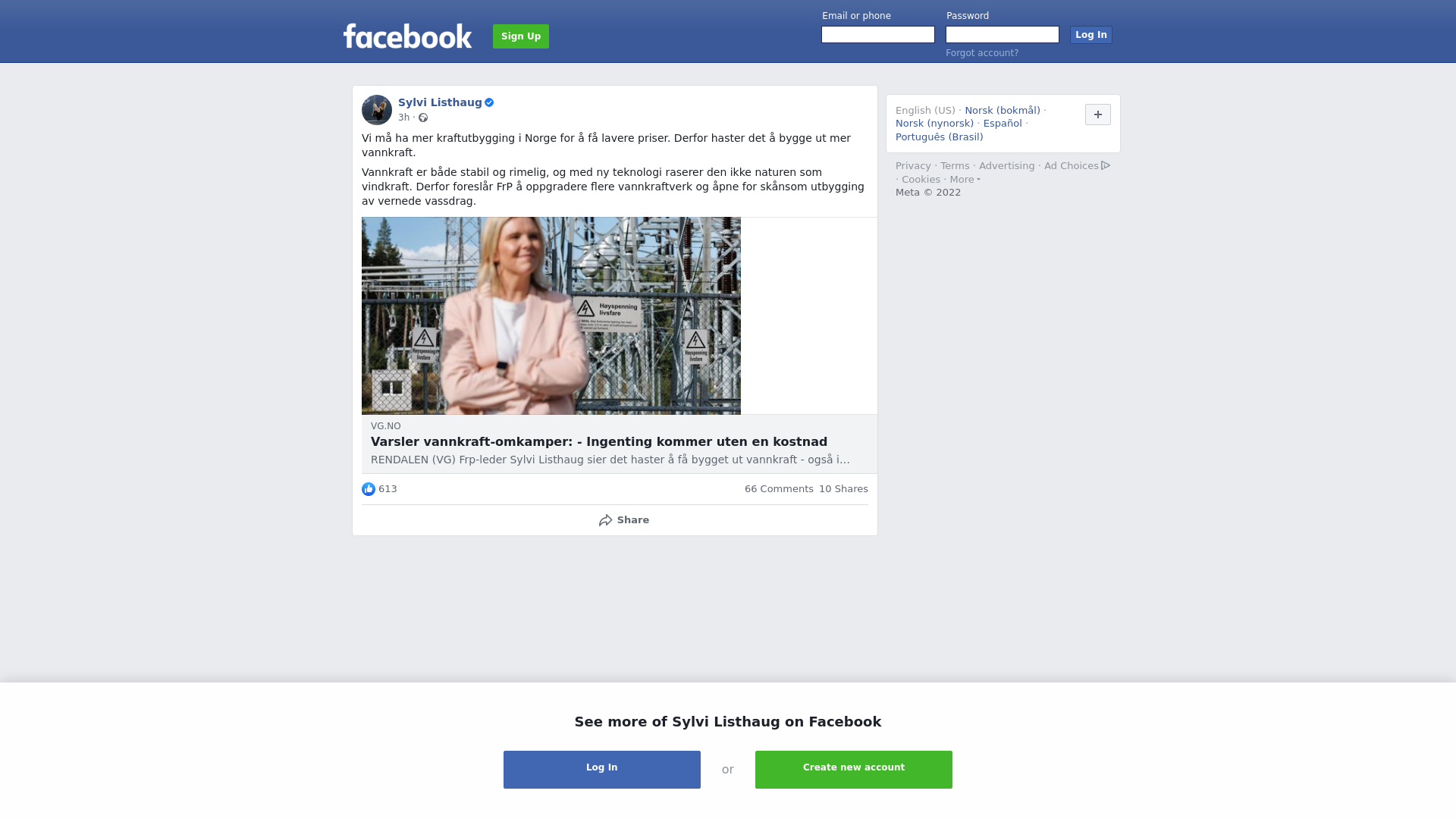 RENDALEN (VG) Frp-leder Sylvi Listhaug sier det haster å få bygget ut vannkraft - også i noen vernede vassdrag og sidevassdrag, for å unngå at Norge må importere enda mer dyr kraft fra Europa.