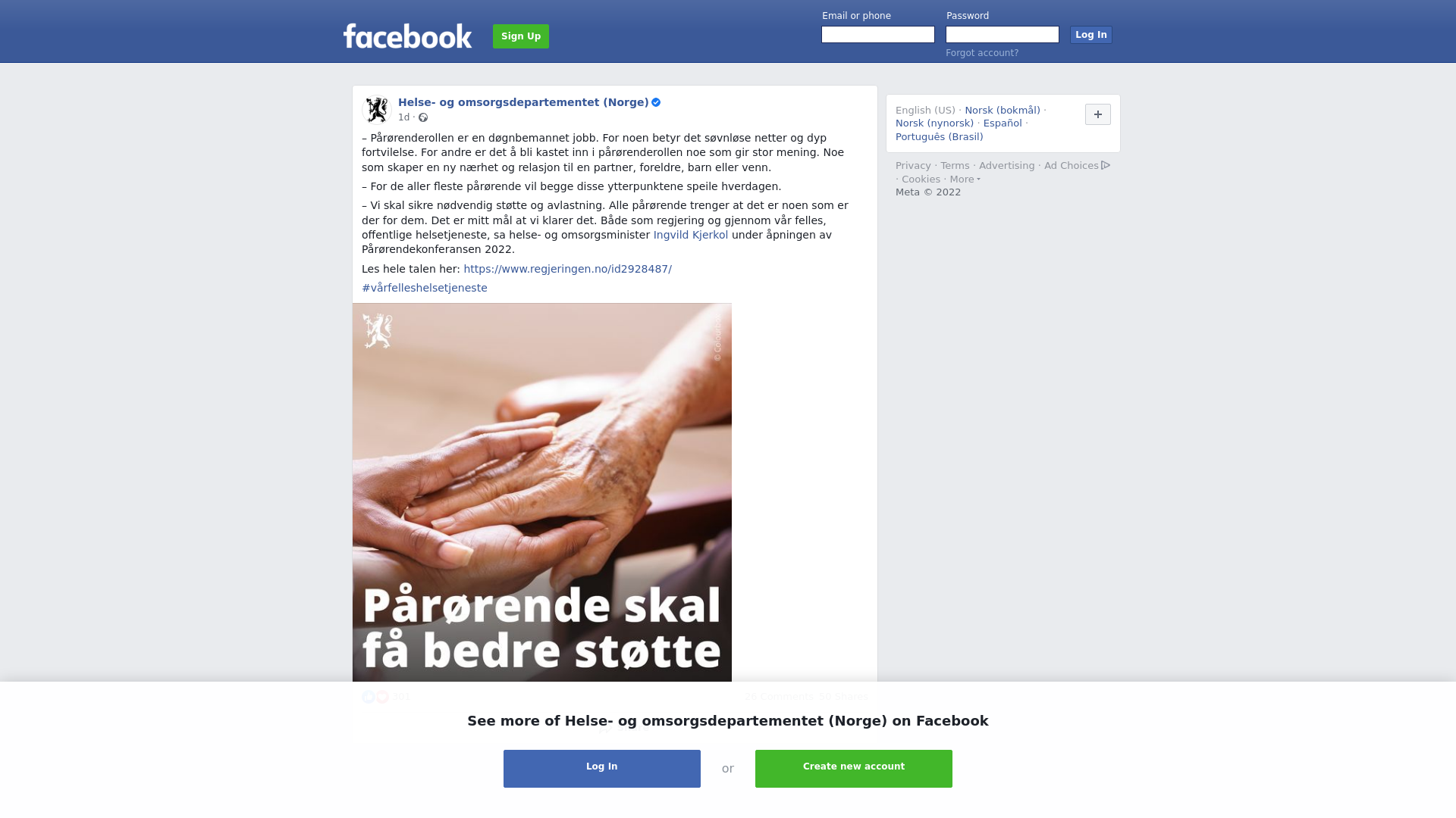 – Pårørenderollen er en døgnbemannet jobb. For noen betyr det søvnløse netter og dyp fortvilelse. For andre er det å bli kastet inn i pårørenderollen noe som gir stor mening. Noe som skaper en ny nærhet og relasjon til en partner, foreldre, barn eller venn. \n\n– For de aller fleste pårørende vil begge disse ytterpunktene speile hverdagen. \n\n– Vi skal sikre nødvendig støtte og avlastning. Alle pårørende trenger at det er noen som er der for dem. Det er mitt mål at vi klarer det. Både som regjering og gjennom vår felles, offentlige helsetjeneste, sa helse- og omsorgsminister Ingvild Kjerkol under åpningen av Pårørendekonferansen 2022.\n\nLes hele talen her: https://www.regjeringen.no/id2928487/ \n\n#vårfelleshelsetjeneste