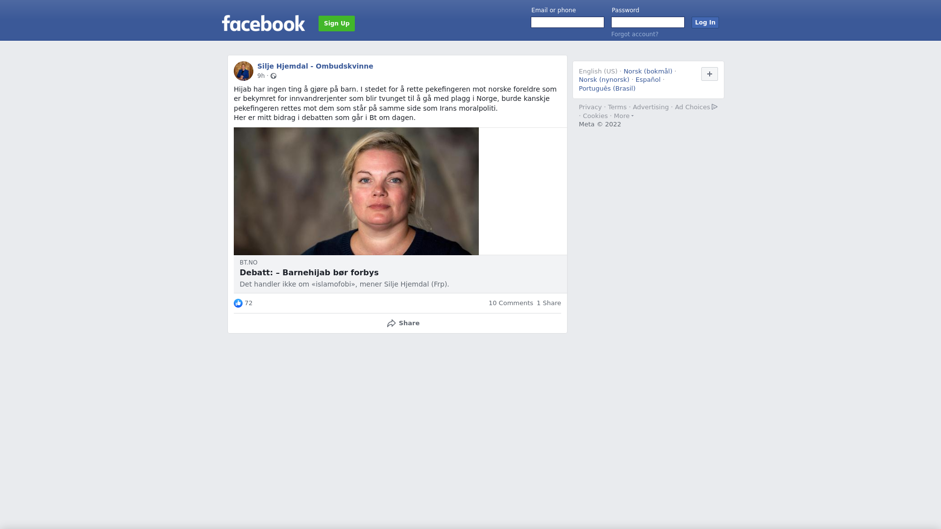 Hijab har ingen ting å gjøre på barn. I stedet for å rette pekefingeren mot norske foreldre som er bekymret for innvandrerjenter som blir tvunget til å gå med plagg i Norge, burde kanskje pekefingeren rettes mot dem som står på samme side som Irans moralpoliti. \nHer er mitt bidrag i debatten som går i Bt om dagen.