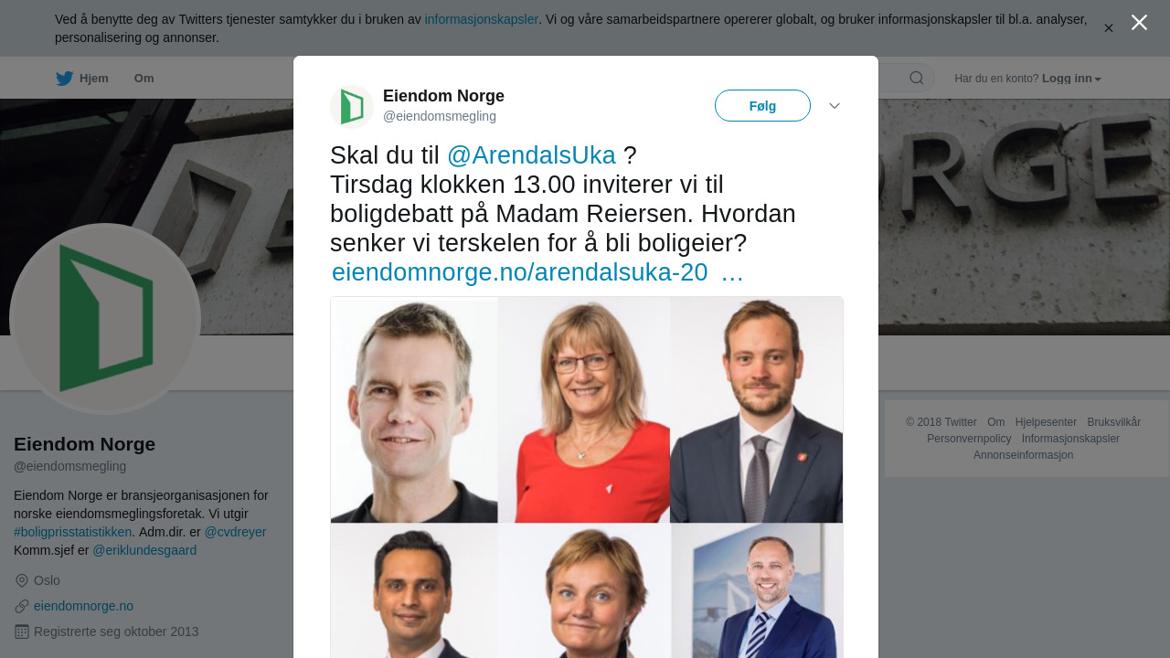 RT @eiendomsmegling: Skal du til @ArendalsUka ? Tirsdag klokken 13.00 inviterer vi til boligdebatt på Madam Reiersen. Hvordan senker vi ter…