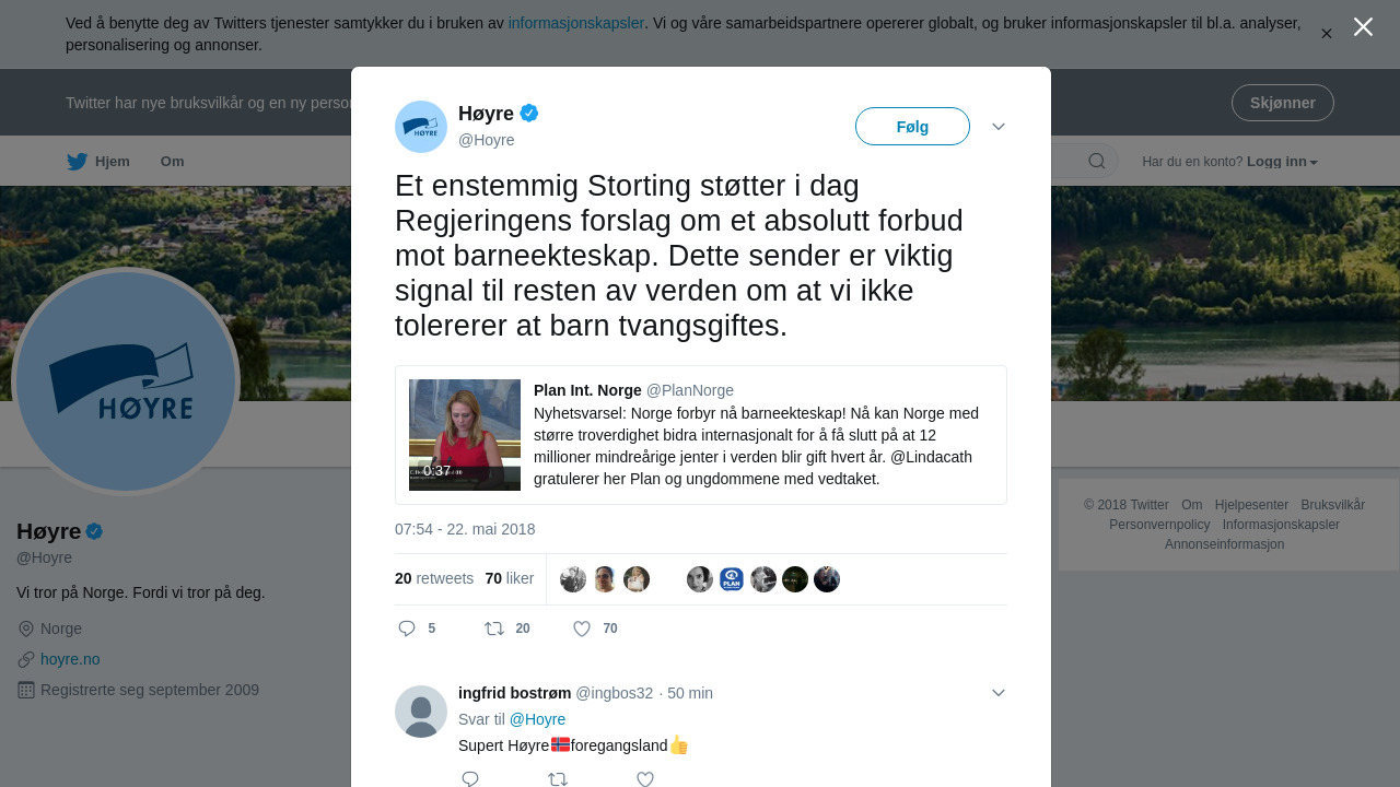 RT @Hoyre: Et enstemmig Storting støtter i dag Regjeringens forslag om et absolutt forbud mot barneekteskap. Dette sender er v… https://t.co/xW1KiNrJXg