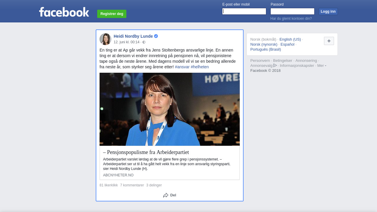 Arbeiderpartiet varslet lørdag at de vil gjøre flere grep i pensjonssystemet. – Arbeiderpartiet ser ut til å ha gått helt vekk fra en linje som ansvarlig styringsparti, sier Heidi Nordby Lunde (H).