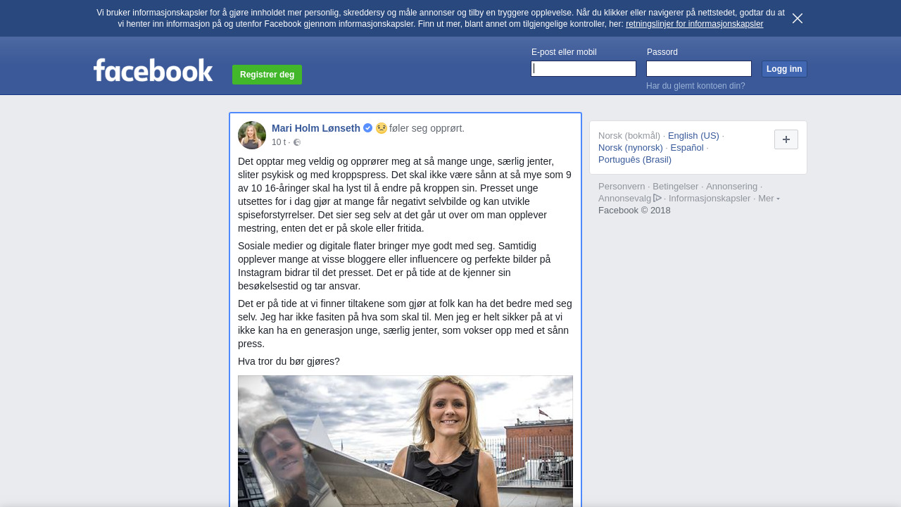 Det er på tide at vi finner tiltakene som gjør at folk kan ha det bedre med seg selv. Jeg har ikke fasiten på hva som skal til. Men jeg er helt sikker på at vi ikke kan ha en generasjon unge, særlig jenter, som vokser opp med et sånn press.