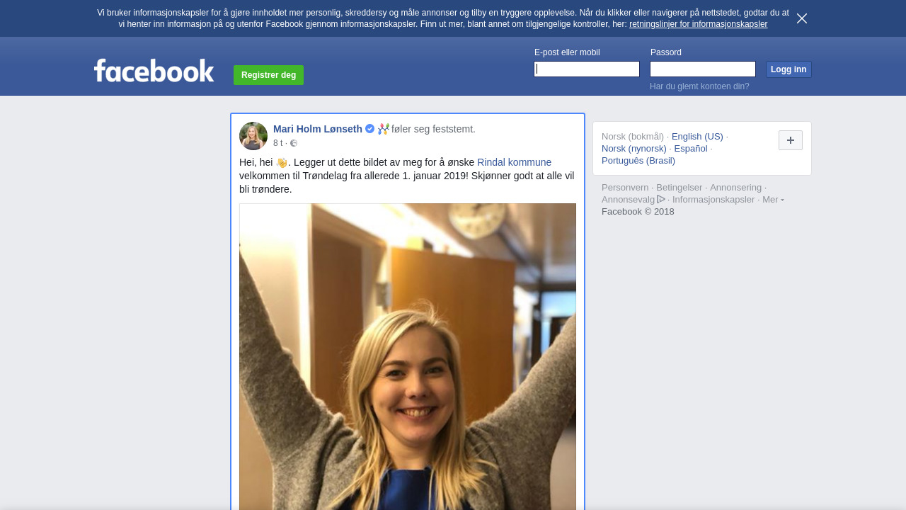 Hei, hei 👋. Legger ut dette bildet av meg for å ønske Rindal kommune velkommen til Trøndelag fra allerede 1. januar 2019! Skjønner godt at alle vil bli trøndere.