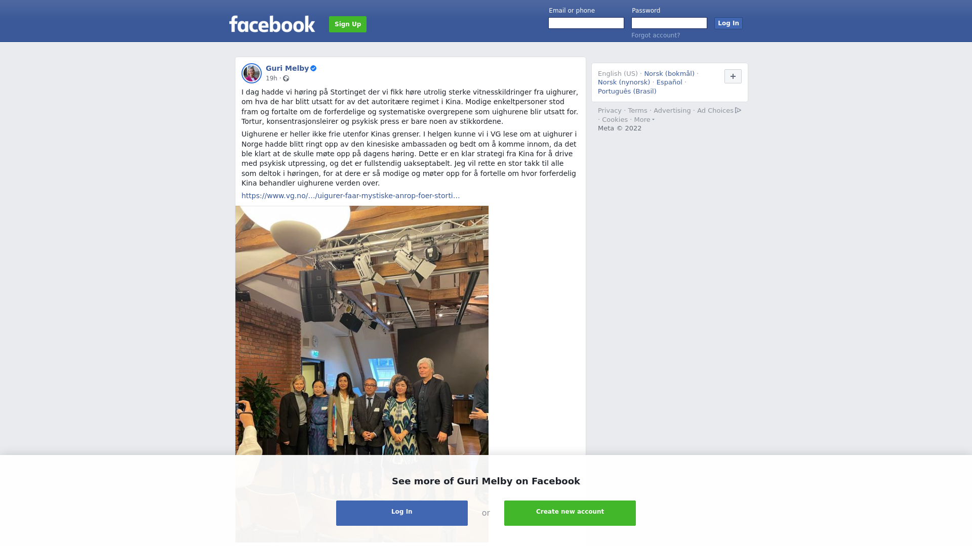 I dag hadde vi høring på Stortinget der vi fikk høre utrolig sterke vitnesskildringer fra uighurer, om hva de har blitt utsatt for av det autoritære regimet i Kina. Modige enkeltpersoner stod fram og fortalte om de forferdelige og systematiske overgrepene som uighurene blir utsatt for. Tortur, konsentrasjonsleirer og psykisk press er bare noen av stikkordene. \n\nUighurene er heller ikke frie utenfor Kinas grenser. I helgen kunne vi i VG lese om at uighurer i Norge hadde blitt ringt opp av den kinesiske ambassaden og bedt om å komme innom, da det ble klart at de skulle møte opp på dagens høring. Dette er en klar strategi fra Kina for å drive med psykisk utpressing, og det er fullstendig uakseptabelt. Jeg vil rette en stor takk til alle som deltok i høringen, for at dere er så modige og møter opp for å fortelle om hvor forferdelig Kina behandler uighurene verden over.\n\nhttps://www.vg.no/nyheter/utenriks/i/P44r27/uigurer-faar-mystiske-anrop-foer-stortingshoering-ment-for-aa-skremme