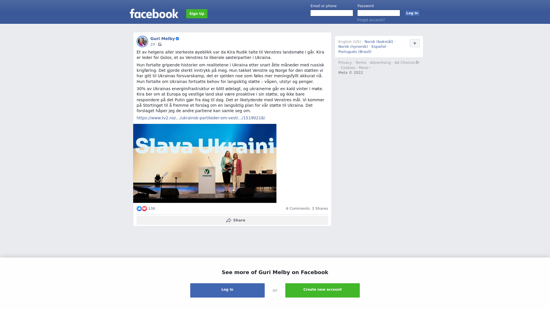 Et av helgens aller sterkeste øyeblikk var da Kira Rudik talte til Venstres landsmøte i går. Kira er leder for Golos, et av Venstres to liberale søsterpartier i Ukraina.\n\nHun fortalte gripende historier om realitetene i Ukraina etter snart åtte måneder med russisk krigføring. Det gjorde sterkt inntrykk på meg. Hun takket Venstre og Norge for den støtten vi har gitt til Ukrainas forsvarskamp, det er sjelden noe som føles mer meningsfyllt akkurat nå. Hun fortalte om Ukrainas fortsatte behov for langsiktig støtte – våpen, utstyr og penger. \n\n30% av Ukrainas energiinfrastruktur er blitt ødelagt, og ukrainerne går en kald vinter i møte. Kira ber om at Europa og vestlige land skal være proaktive i sin støtte, og ikke bare respondere på det Putin gjør fra dag til dag. Det er likelydende med Venstres mål. Vi kommer på Stortinget til å fremme et forslag om en langsiktig plan for vår støtte til Ukraina. Det forslaget håper jeg de andre partiene kan samle seg om.\n\nhttps://www.tv2.no/nyheter/innenriks/ukrainsk-partileder-om-vestlig-stotte-for-lite-og-for-sent/15190218/