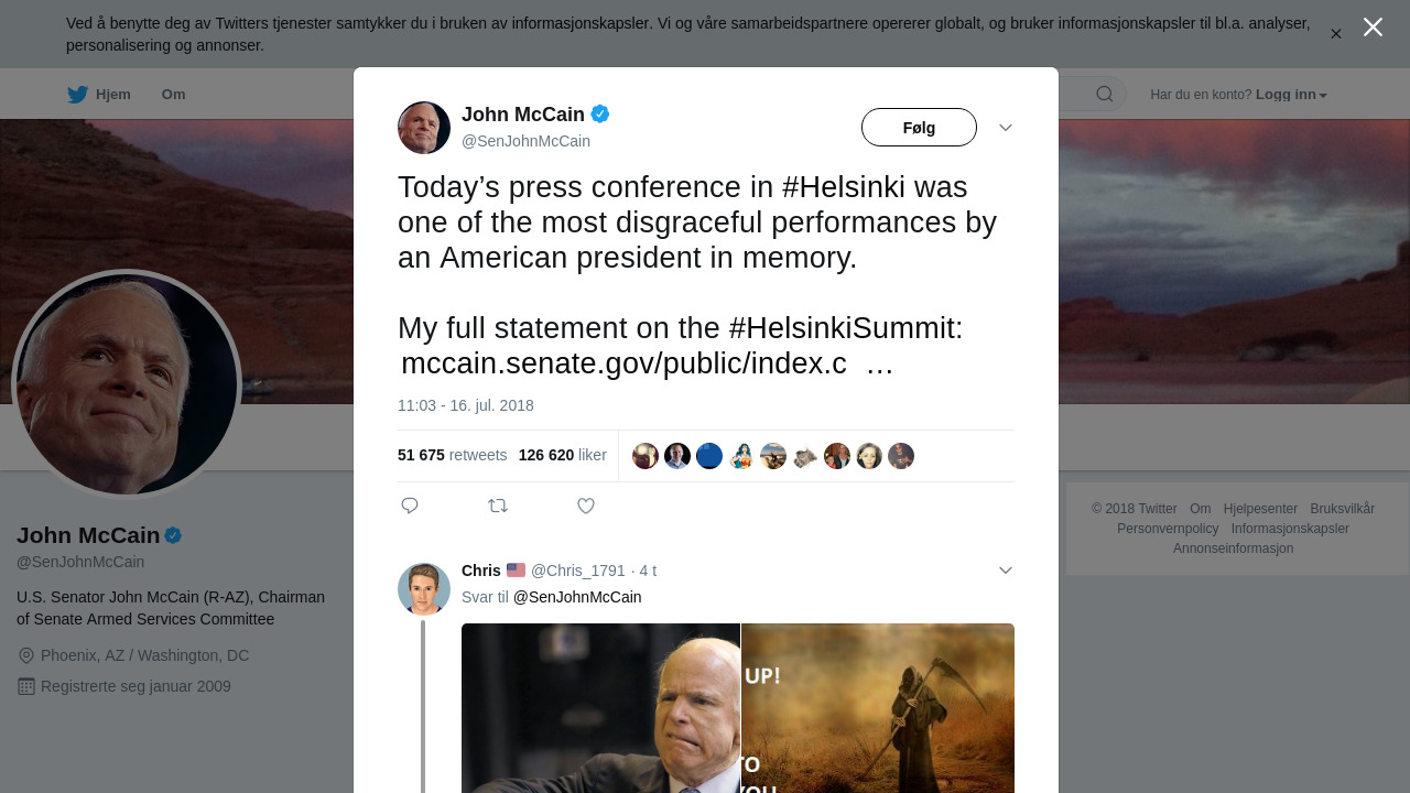RT @SenJohnMcCain: Today’s press conference in #Helsinki was one of the most disgraceful performances by an American president in memo… https://t.co/CS9FXzjmjW
