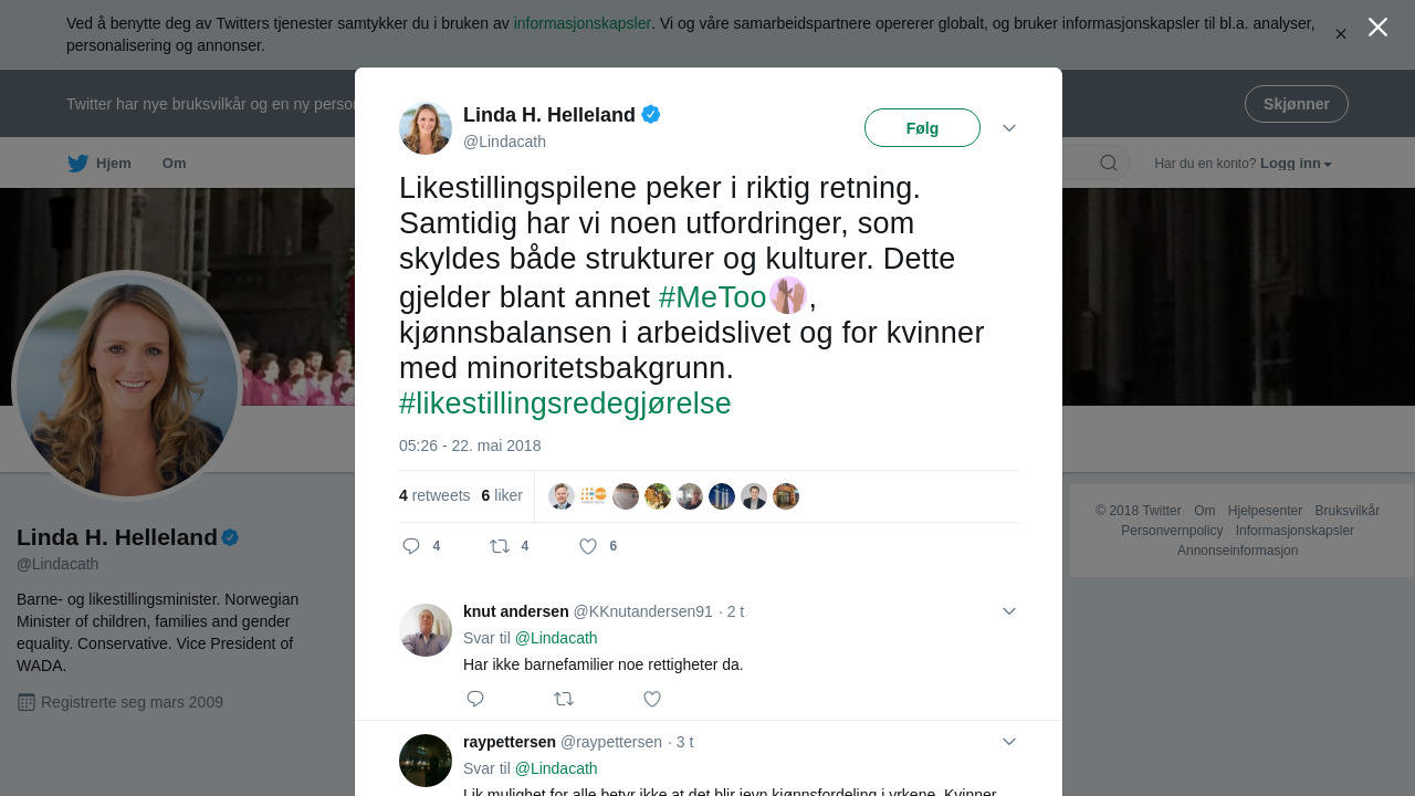 RT @Lindacath: Likestillingspilene peker i riktig retning. Samtidig har vi noen utfordringer, som skyldes både strukturer og kultu… https://t.co/H4VwKgbsUS