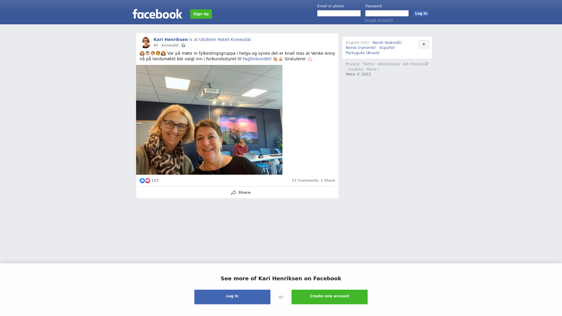 Orginalt innlegg på Facebook