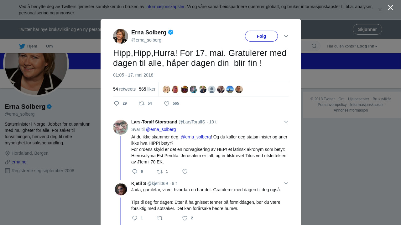 RT @erna_solberg: Hipp,Hipp,Hurra! For 17. mai. Gratulerer med dagen til alle, håper dagen din blir fin !