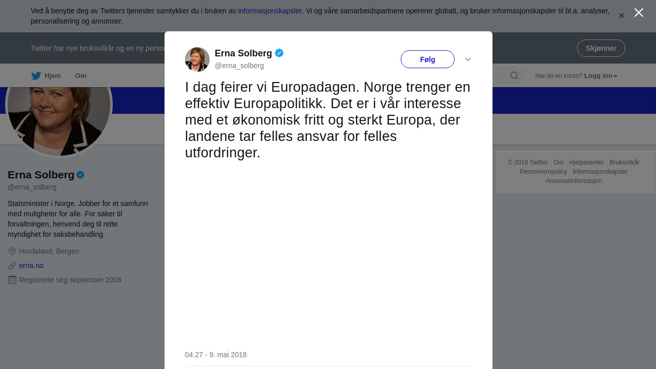 RT @erna_solberg: I dag feirer vi Europadagen. Norge trenger en effektiv Europapolitikk. Det er i vår interesse med et økonomisk frit… https://t.co/d94GYpC6JN