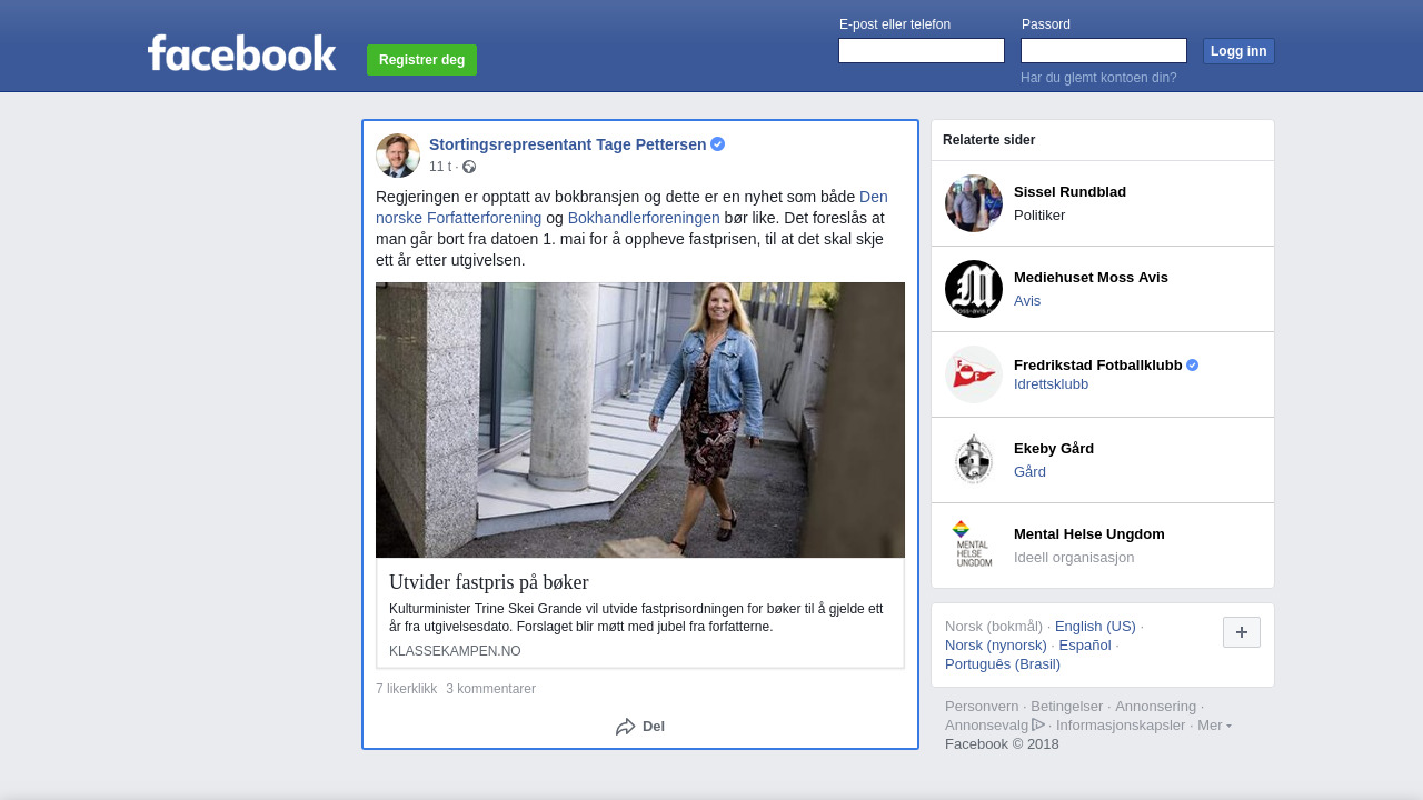 Regjeringen er opptatt av bokbransjen og dette er en nyhet som både Den norske Forfatterforening og Bokhandlerforeningen bør like. Det foreslås at man går bort fra datoen 1. mai for å oppheve fastprisen, til at det skal skje ett år etter utgivelsen.