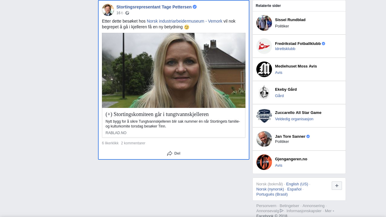 Innlegg fra Stortingsrepresentant Tage Pettersen