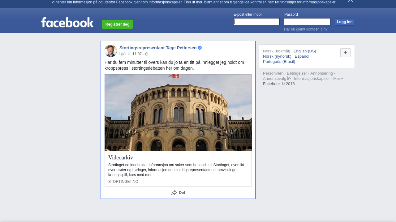 Innlegg fra Stortingsrepresentant Tage Pettersen