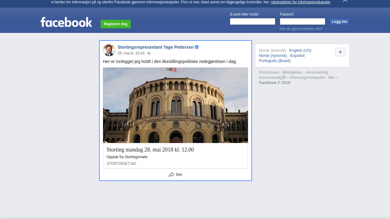 Innlegg fra Stortingsrepresentant Tage Pettersen