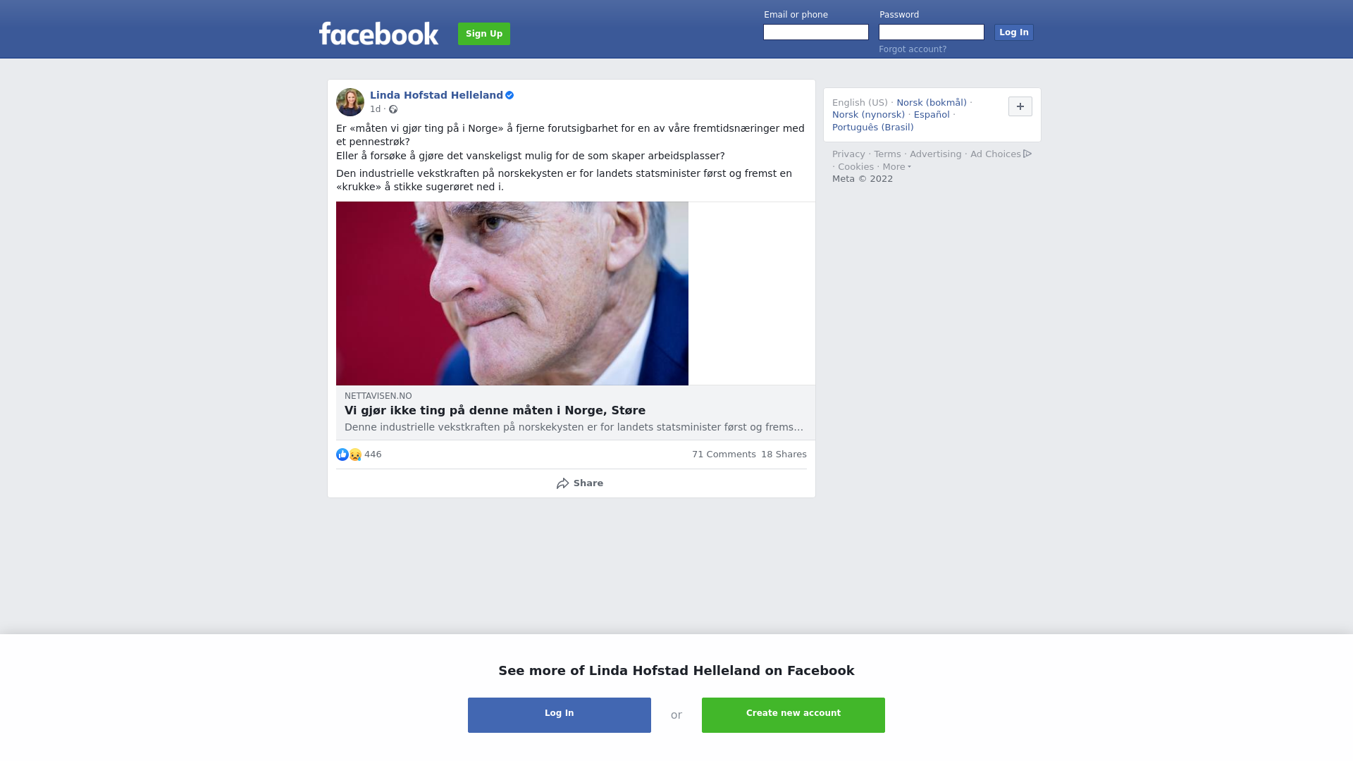 Er «måten vi gjør ting på i Norge» å fjerne forutsigbarhet for en av våre fremtidsnæringer med et pennestrøk?\nEller å forsøke å gjøre det vanskeligst mulig for de som skaper arbeidsplasser?\n\nDen industrielle vekstkraften på norskekysten er for landets statsminister først og fremst en «krukke» å stikke sugerøret ned i.