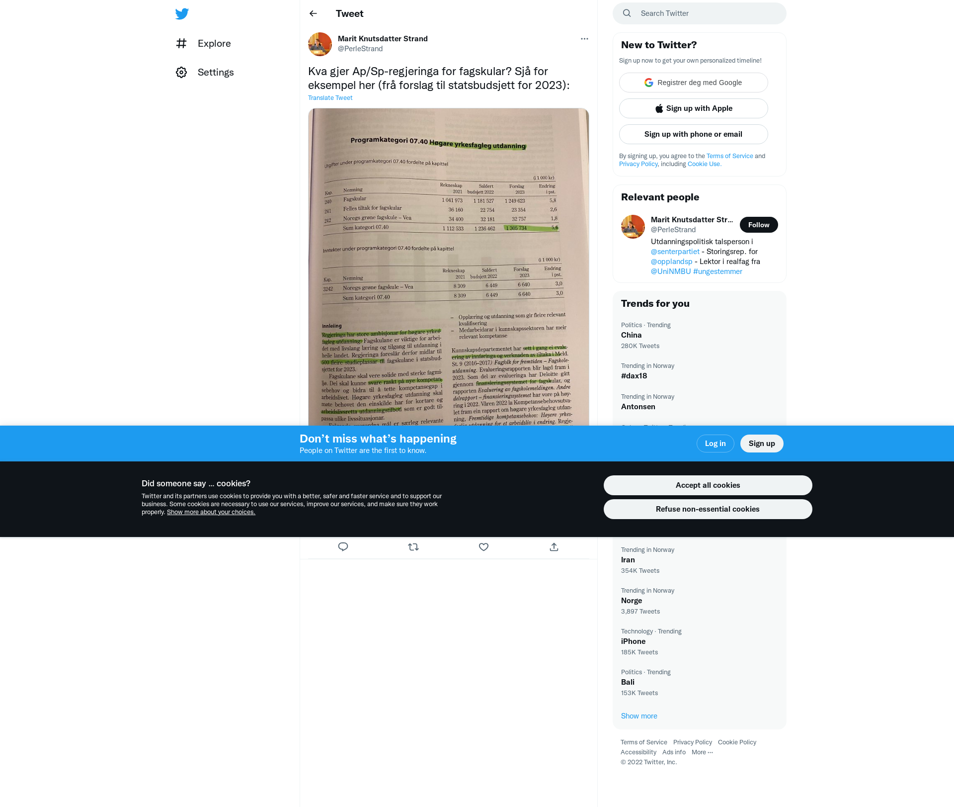 Kva gjer Ap/Sp-regjeringa for fagskular? Sjå for eksempel her (frå forslag til statsbudsjett for 2023): https://t.co/NRHKL7l7g9