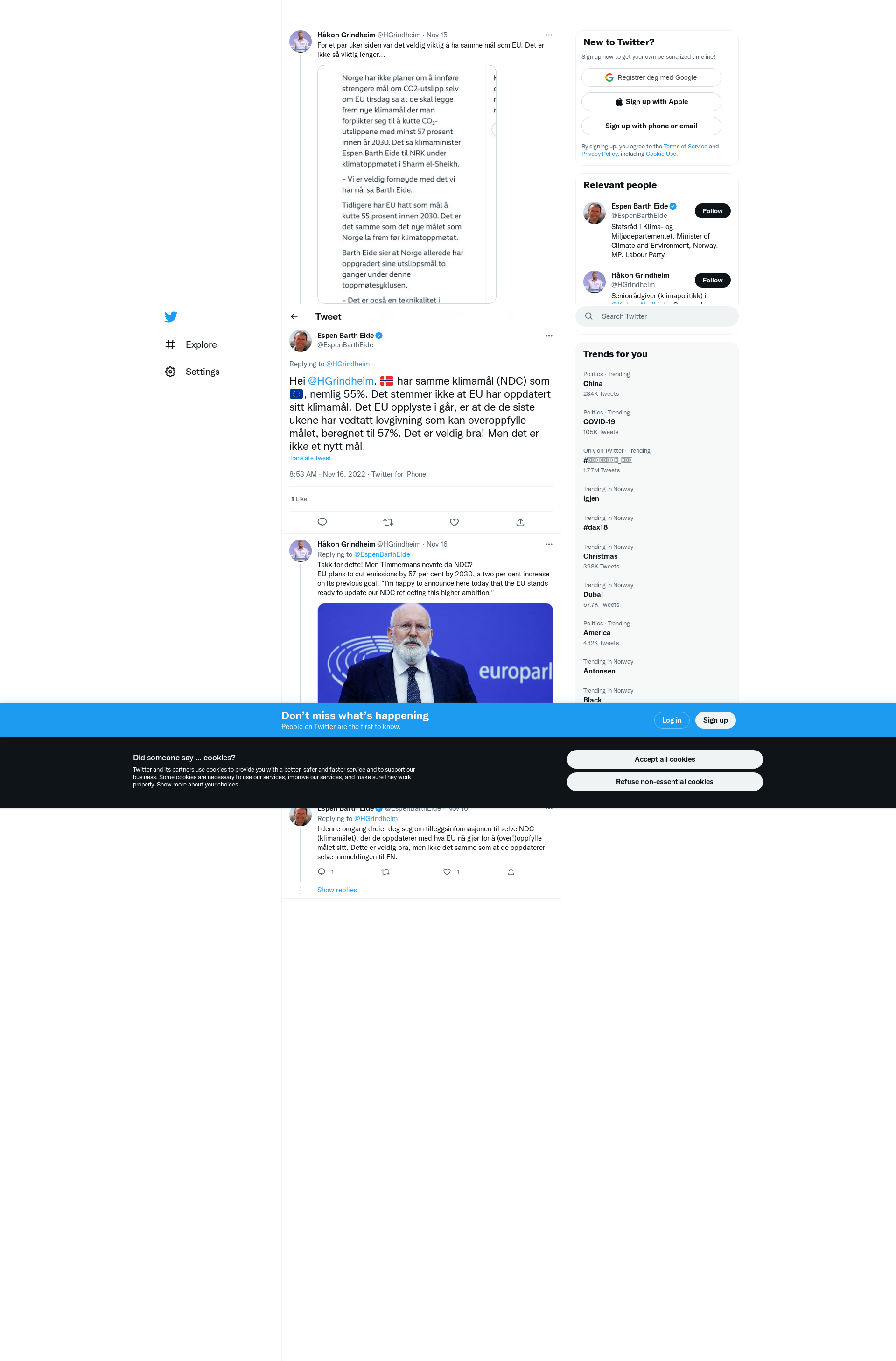 @HGrindheim Hei @HGrindheim. 🇳🇴 har samme klimamål (NDC) som 🇪🇺, nemlig 55%. Det stemmer ikke at EU har oppdatert sitt klimamål. Det EU opplyste i går, er at de de siste ukene har vedtatt lovgivning som kan overoppfylle målet, beregnet til 57%. Det er veldig bra! Men det er ikke et nytt mål.
