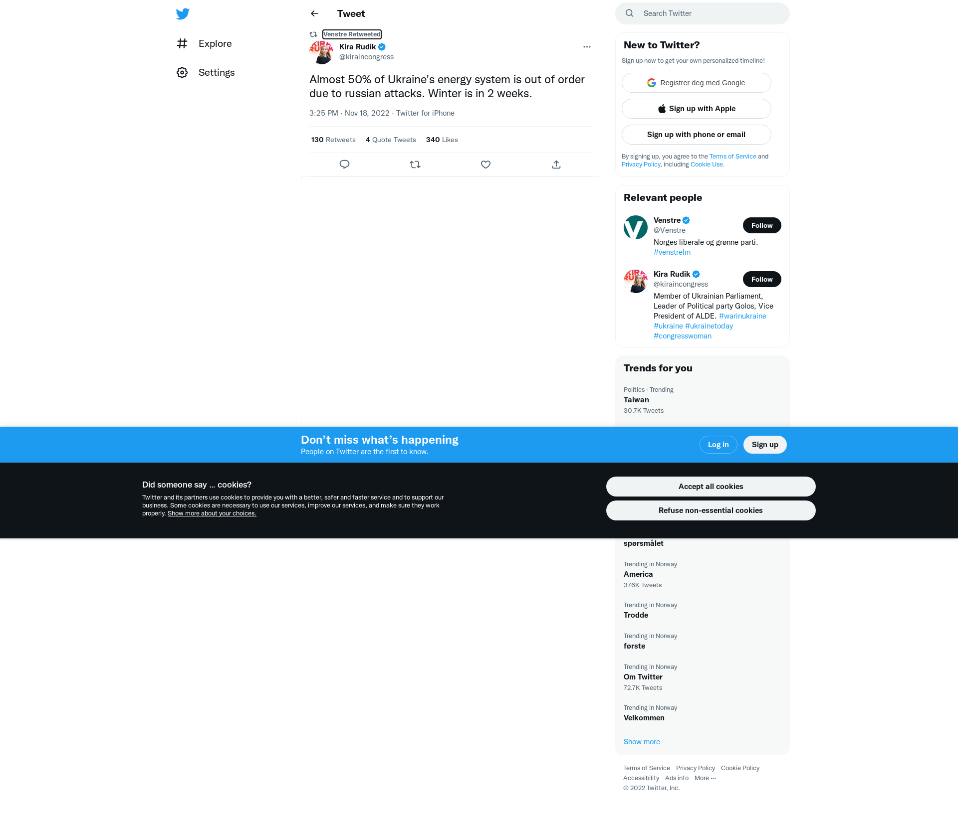 RT @kiraincongress: Almost 50% of Ukraine's energy system is out of order due to russian attacks. Winter is in 2 weeks.