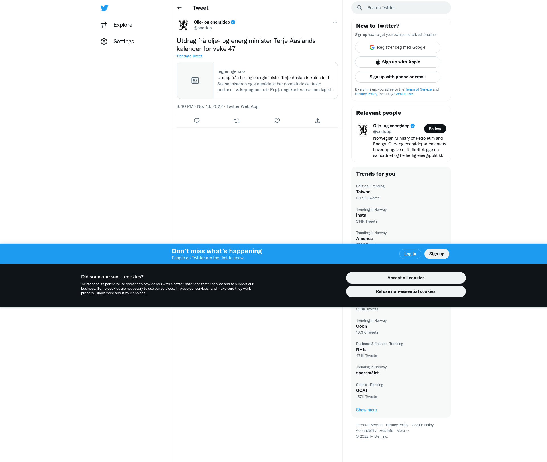 Utdrag frå olje- og energiminister Terje Aaslands kalender for veke 47 https://t.co/iFomxYg8rJ