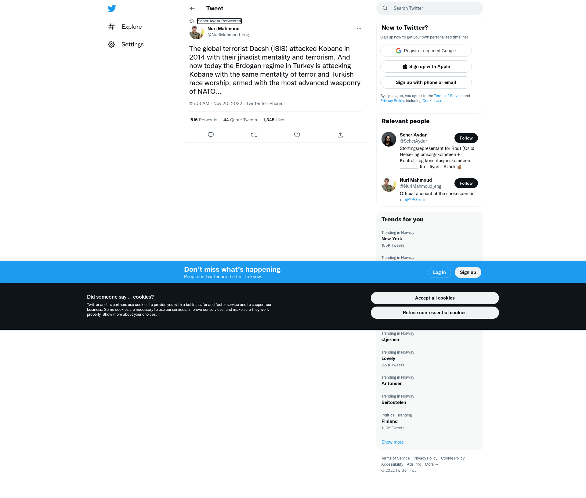 RT @NuriMahmoud_eng: The global terrorist Daesh (ISIS) attacked Kobane in 2014 with their jihadist mentality and terrorism. And now today the Erdogan regime in Turkey is attacking Kobane with the same mentality of terror and Turkish race worship, armed with the most advanced weaponry of NATO...