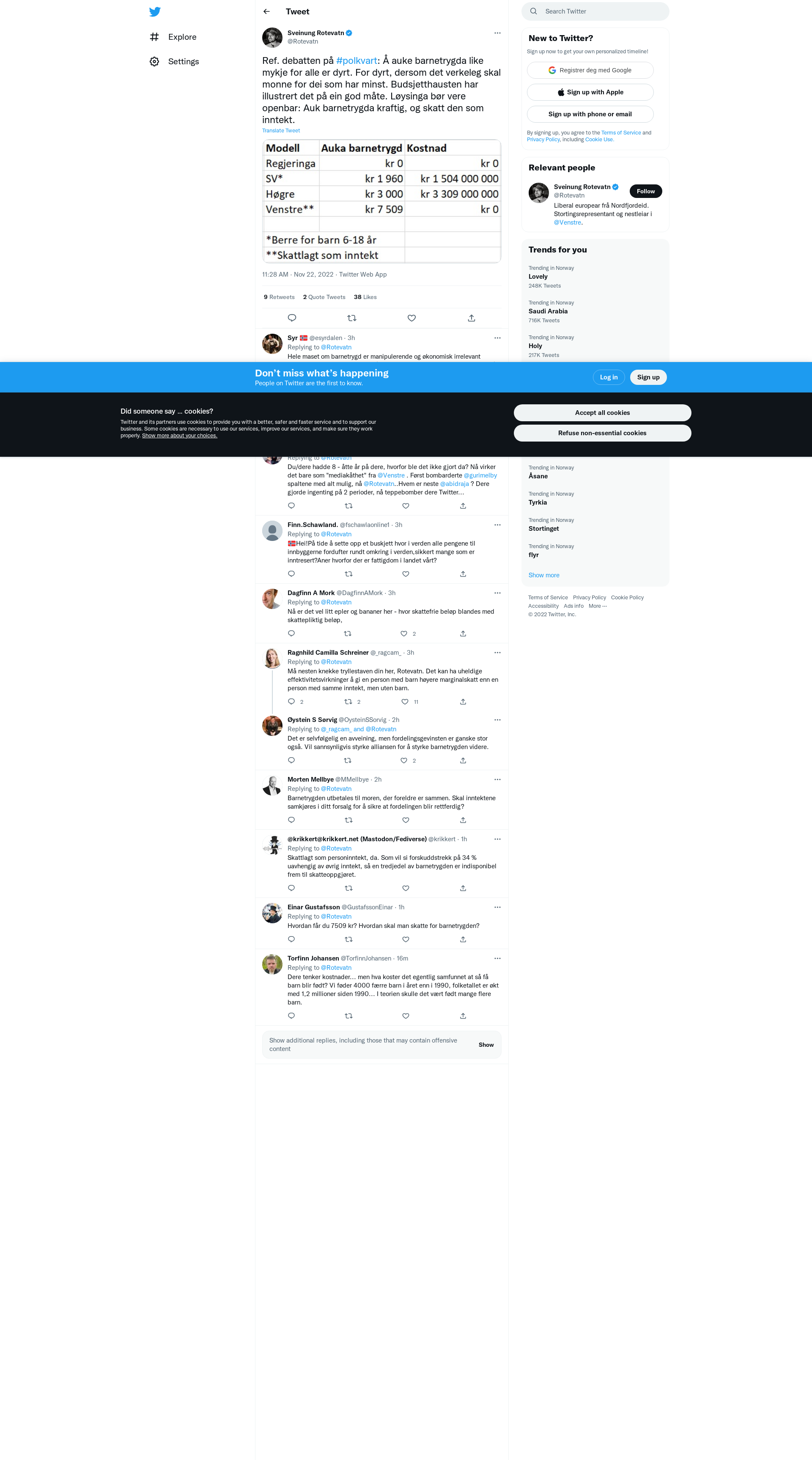 Ref. debatten på #polkvart: Å auke barnetrygda like mykje for alle er dyrt. For dyrt, dersom det verkeleg skal monne for dei som har minst. Budsjetthausten har illustrert det på ein god måte. Løysinga bør vere openbar: Auk barnetrygda kraftig, og skatt den som inntekt. https://t.co/IDb6fl04JP