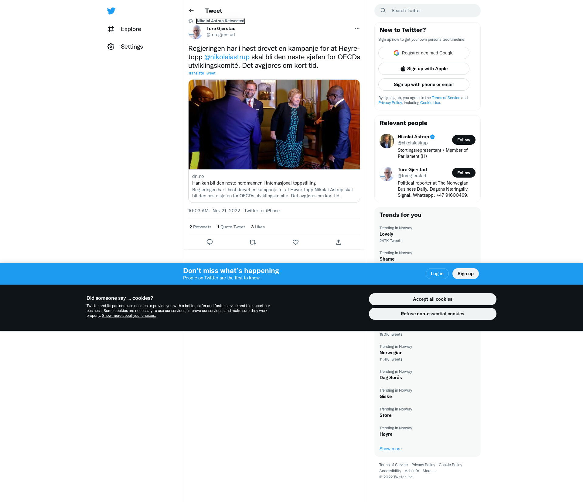 RT @toregjerstad: Regjeringen har i høst drevet en kampanje for at Høyre-topp @nikolaiastrup skal bli den neste sjefen for OECDs utviklingskomité. Det avgjøres om kort tid. https://t.co/Q8Ixu9tTkx
