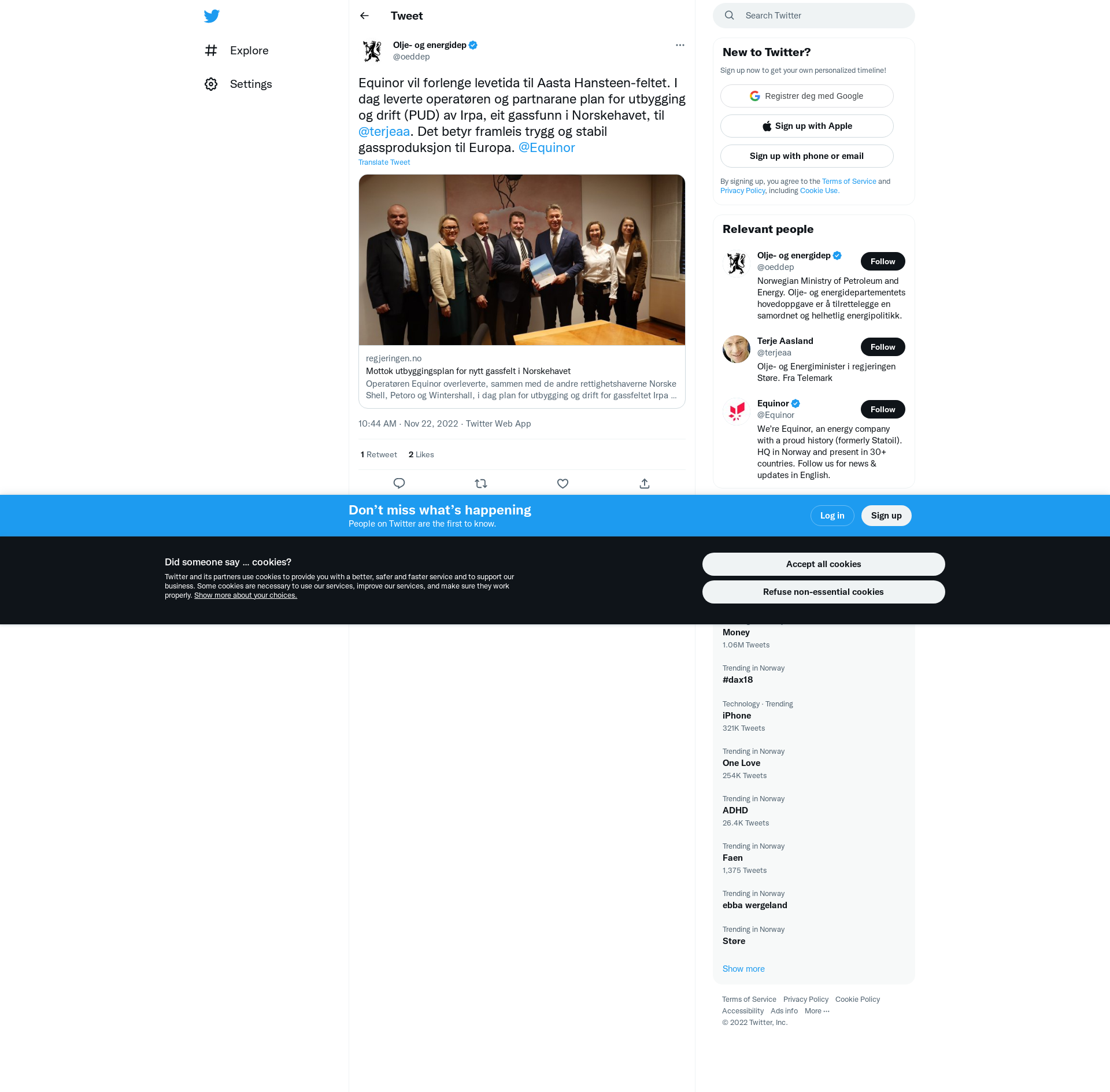 Equinor vil forlenge levetida til Aasta Hansteen-feltet. I dag leverte operatøren og partnarane plan for utbygging og drift (PUD) av Irpa, eit gassfunn i Norskehavet, til @terjeaa. Det betyr framleis trygg og stabil gassproduksjon til Europa. @Equinor https://t.co/qnJJxEPgCV