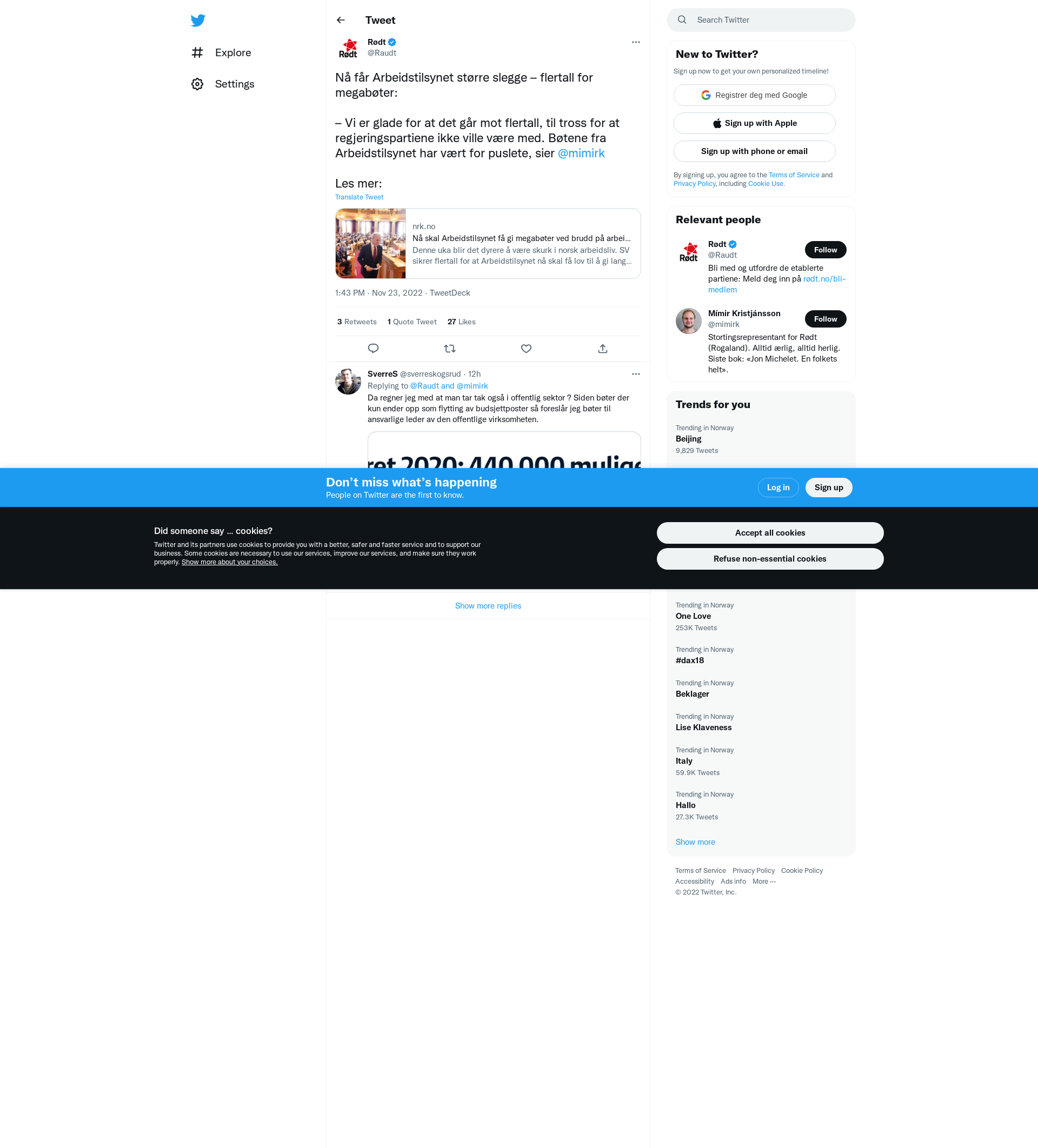 Nå får Arbeidstilsynet større slegge – flertall for megabøter:\n\n– Vi er glade for at det går mot flertall, til tross for at regjeringspartiene ikke ville være med. Bøtene fra Arbeidstilsynet har vært for puslete, sier @mimirk\n\nLes mer: https://t.co/EfZ3A4y1j4