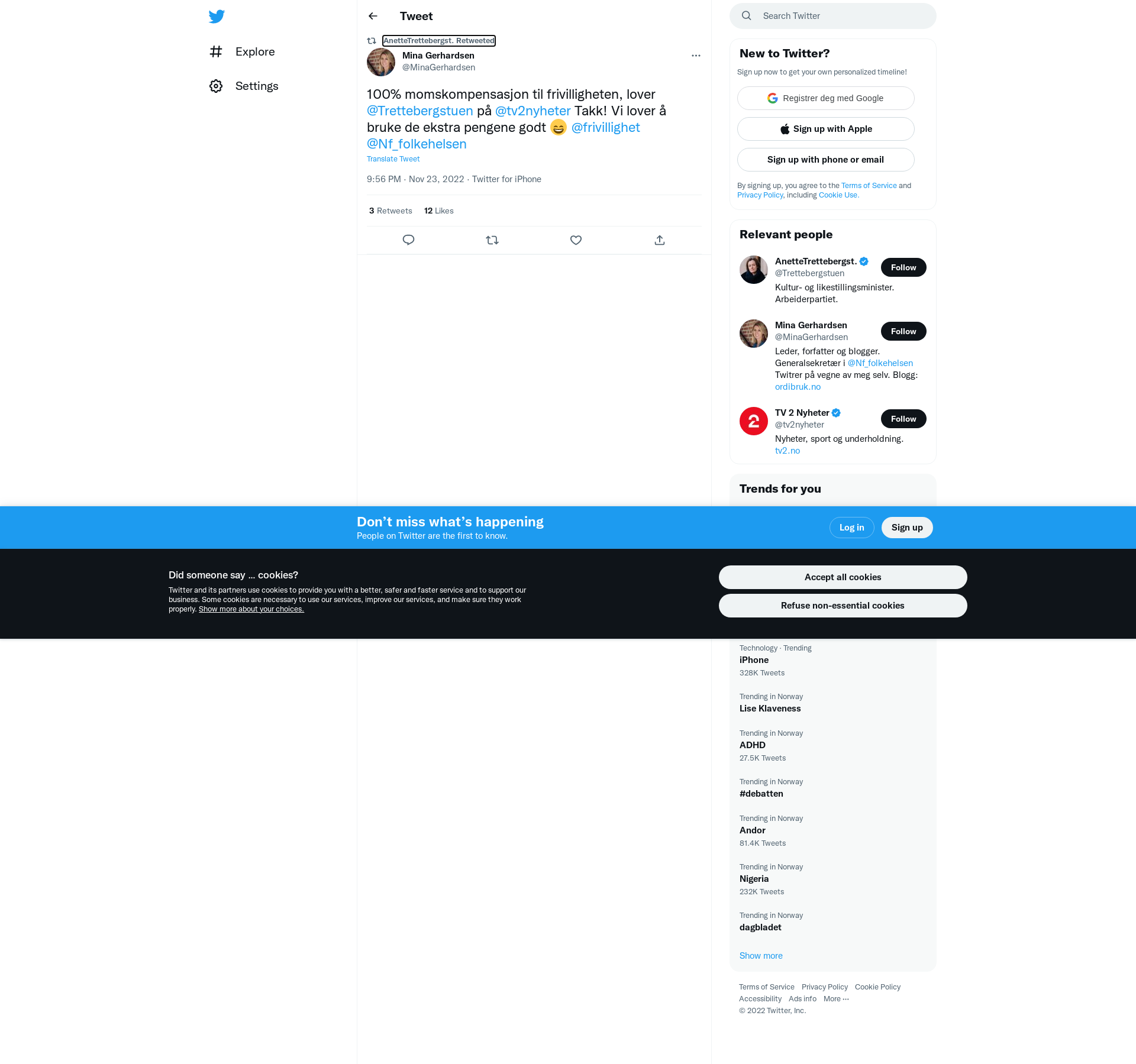 RT @MinaGerhardsen: 100% momskompensasjon til frivilligheten, lover @Trettebergstuen på @tv2nyheter Takk! Vi lover å bruke de ekstra pengene godt 😄 @frivillighet @Nf_folkehelsen