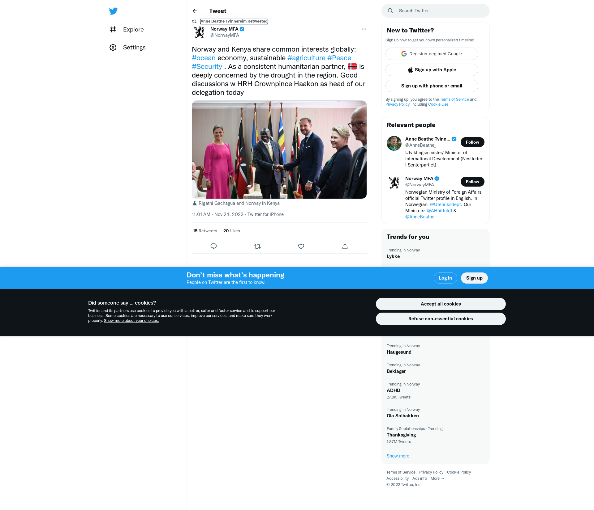 RT @NorwayMFA: Norway and Kenya share common interests globally: #ocean economy, sustainable #agriculture #Peace #Security . As a consistent humanitarian partner, 🇳🇴 is deeply concerned by the drought in the region. Good discussions w HRH Crownpince Haakon as head of our delegation today https://t.co/HBU841Lm7y