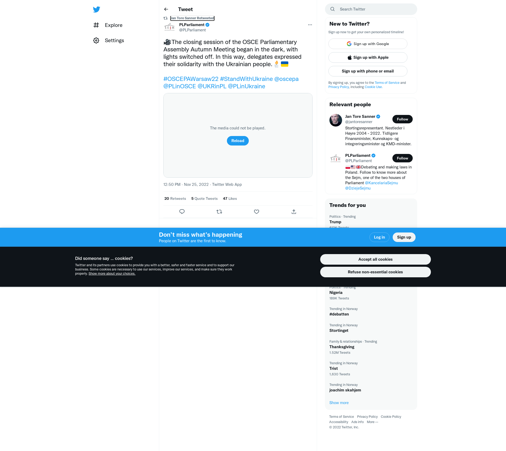 RT @PLParliament: 🎥The closing session of the OSCE Parliamentary Assembly Autumn Meeting began in the dark, with lights switched off. In this way, delegates expressed their solidarity with the Ukrainian people.🕯️🇺🇦\n\n#OSCEPAWarsaw22 #StandWithUkraine @oscepa @PLinOSCE @UKRinPL @PLinUkraine https://t.co/BMqQv2L99q