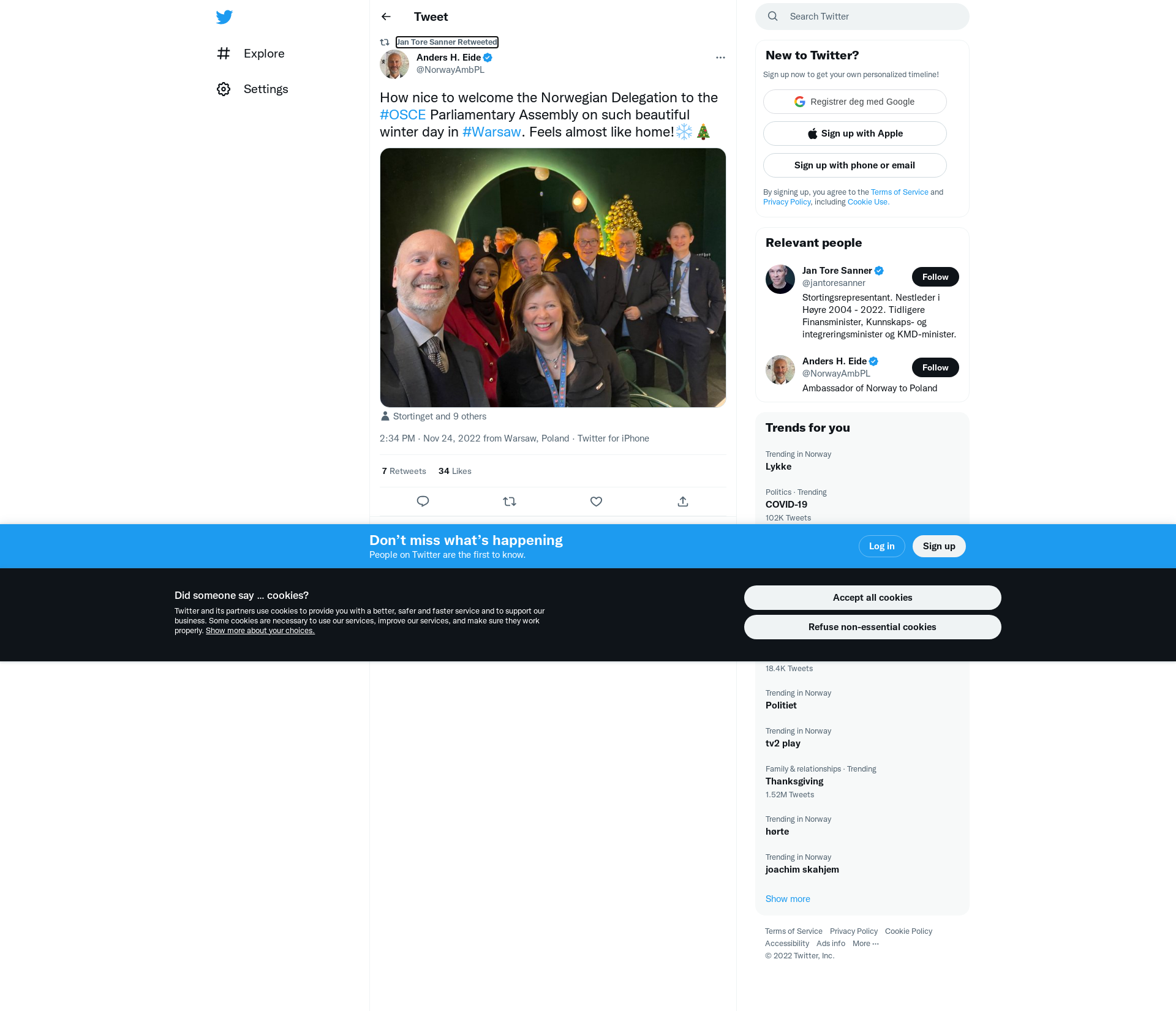 RT @NorwayAmbPL: How nice to welcome the Norwegian Delegation to the #OSCE Parliamentary Assembly on such beautiful winter day in #Warsaw. Feels almost like home!❄️🎄 https://t.co/NvjO71eAyA