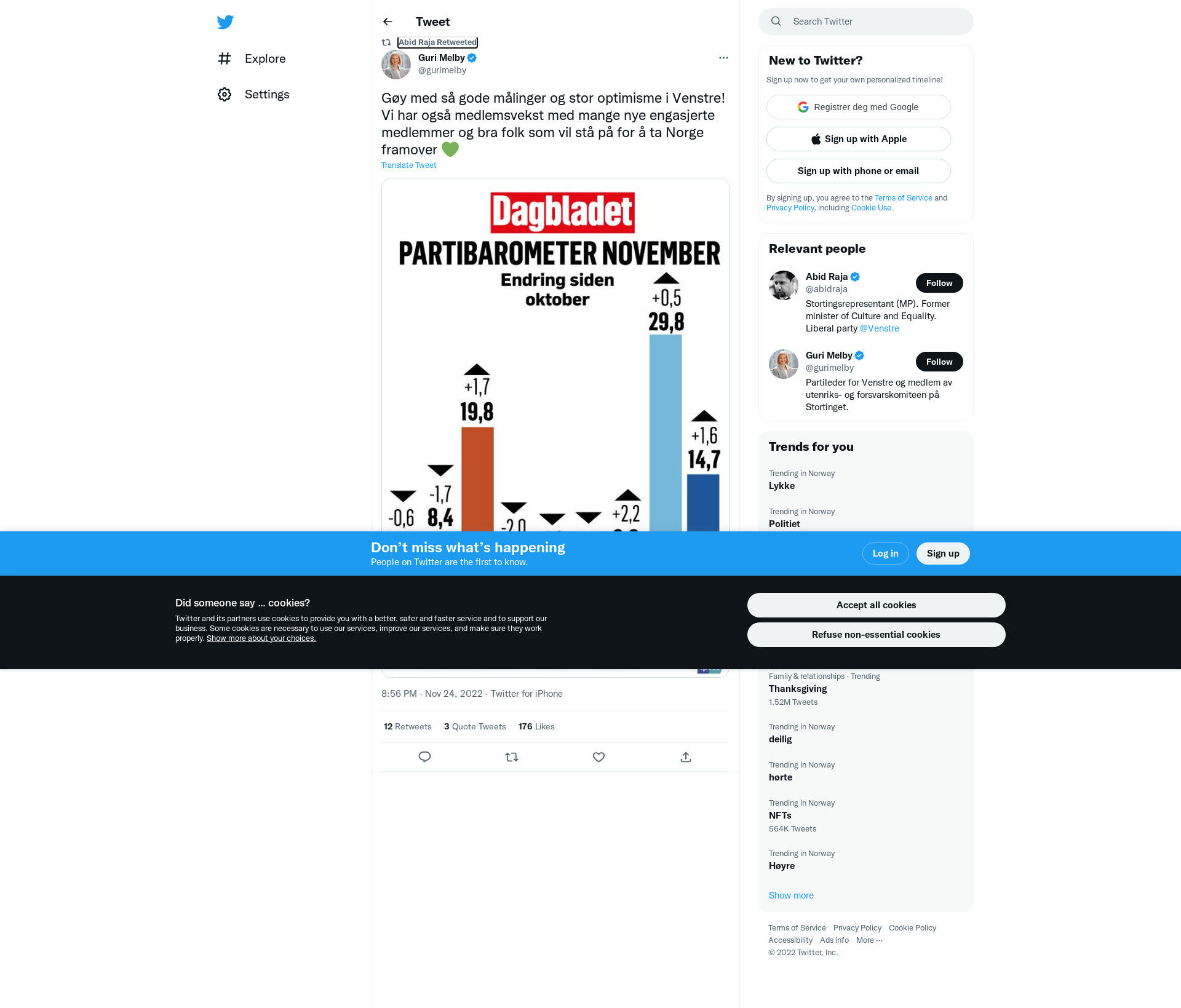 RT @gurimelby: Gøy med så gode målinger og stor optimisme i Venstre! Vi har også medlemsvekst med mange nye engasjerte medlemmer og bra folk som vil stå på for å ta Norge framover 💚 https://t.co/ktu0TfK9Ic