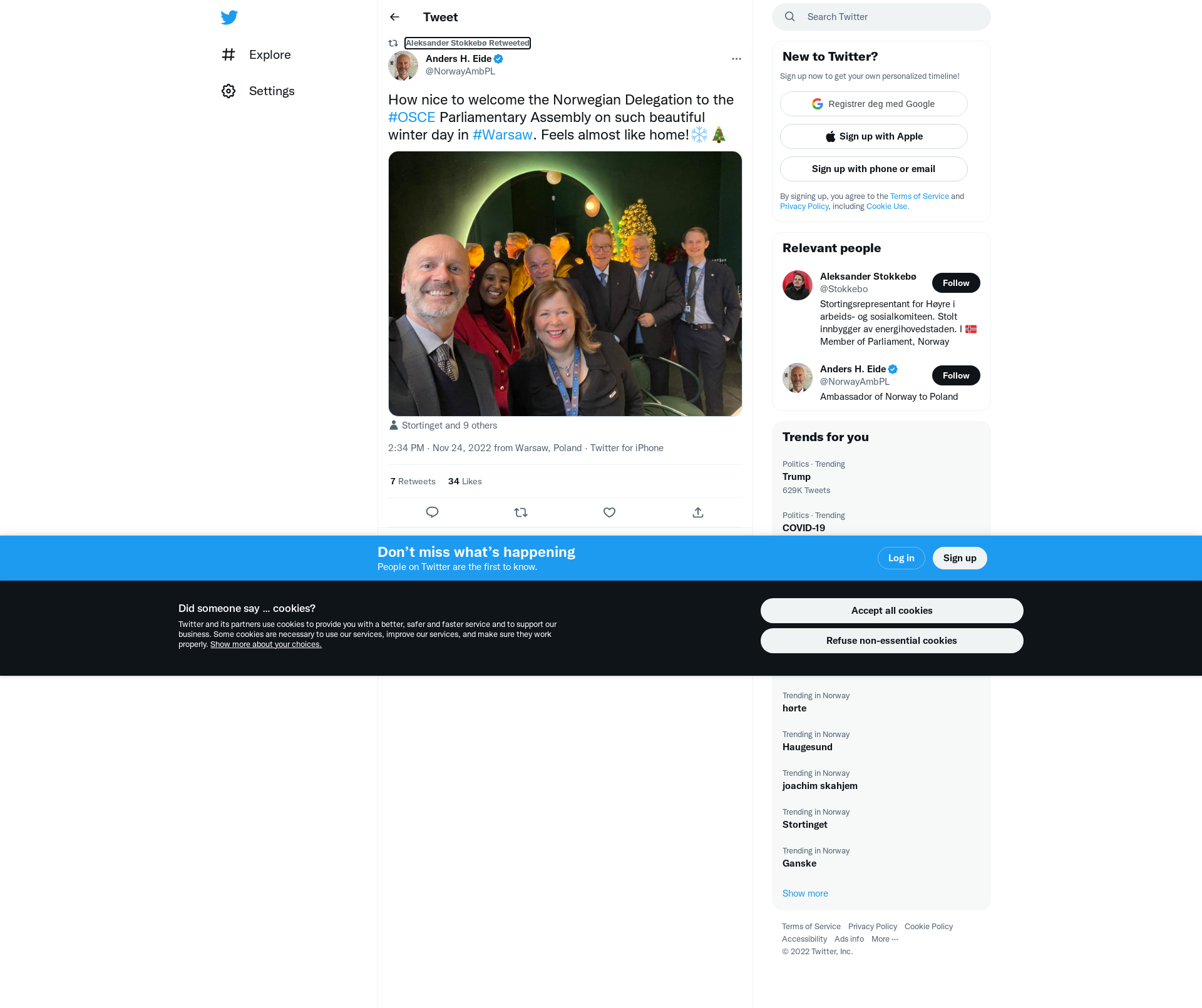 RT @NorwayAmbPL: How nice to welcome the Norwegian Delegation to the #OSCE Parliamentary Assembly on such beautiful winter day in #Warsaw. Feels almost like home!❄️🎄 https://t.co/NvjO71eAyA