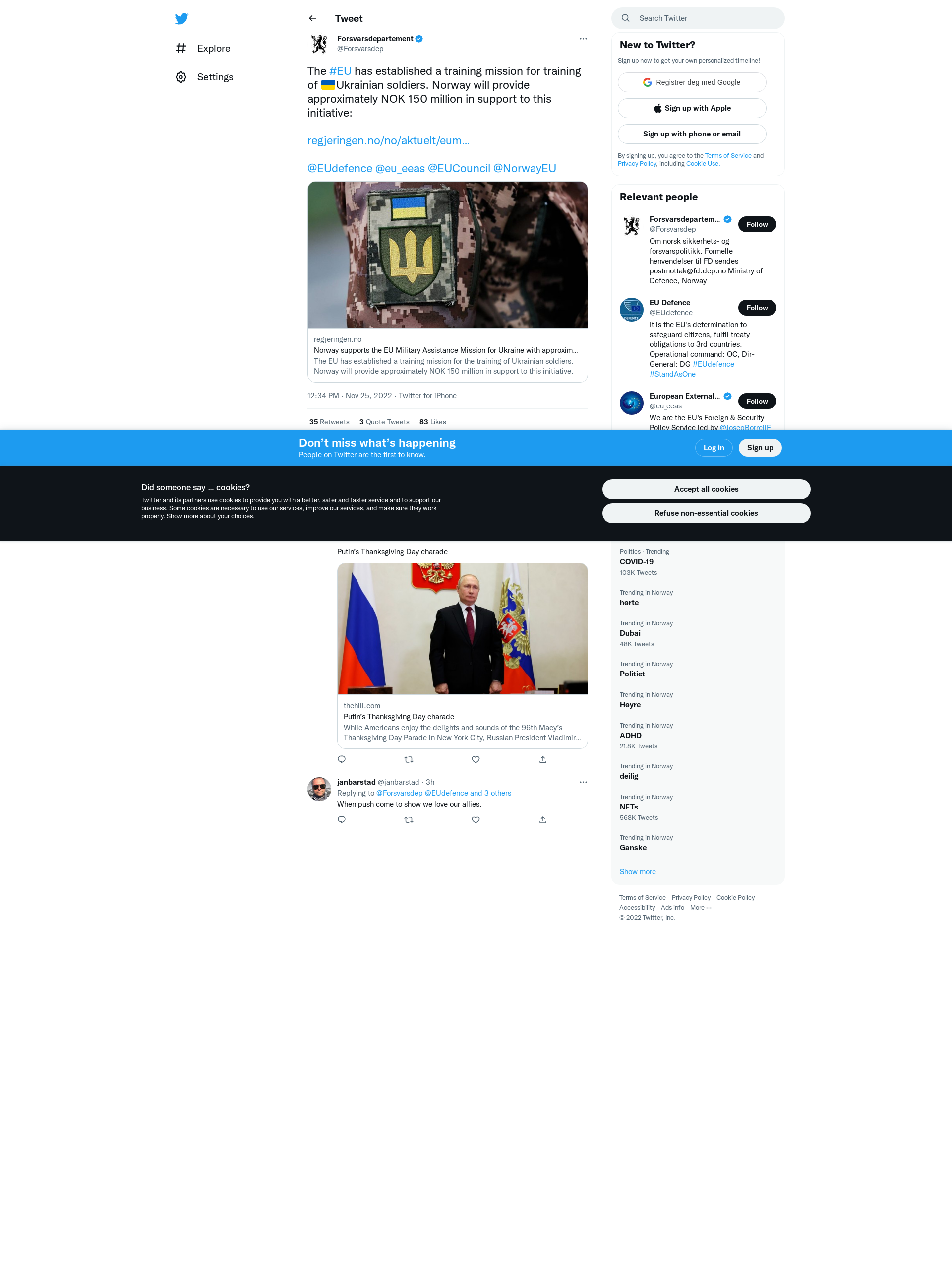 Norway supports the EU Military Assistance Mission for Ukraine with approximately NOK 150 million