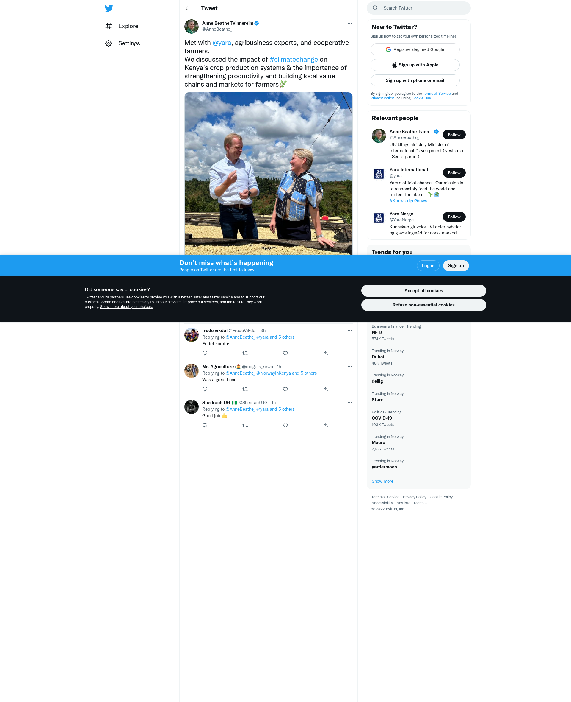 Met with @yara, agribusiness experts, and cooperative farmers.\nWe discussed the impact of #climatechange on Kenya's crop production systems & the importance of strengthening productivity and building local value chains and markets for farmers🌿 https://t.co/vUU9xhzkHM