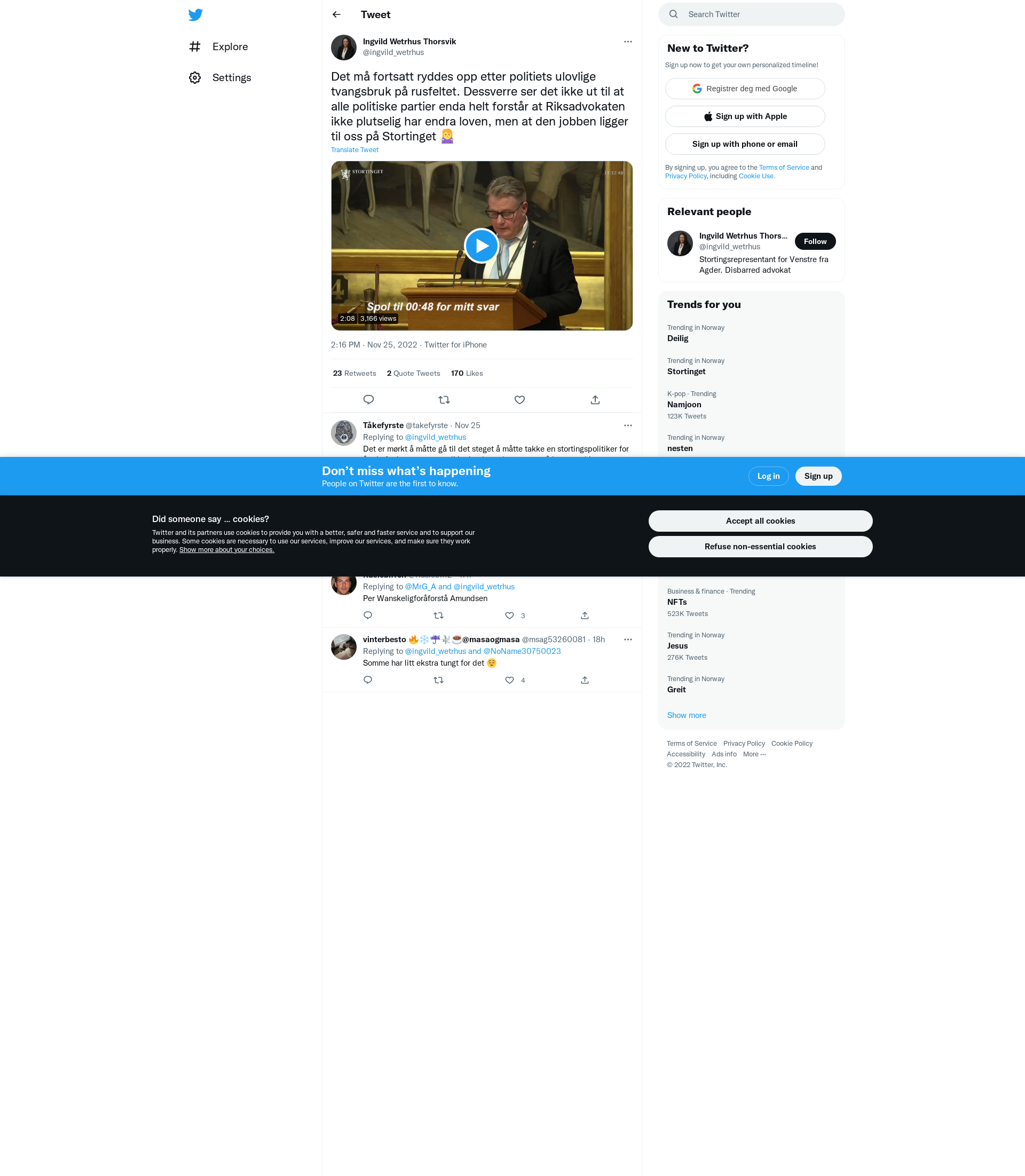 Det må fortsatt ryddes opp etter politiets ulovlige tvangsbruk på rusfeltet. Dessverre ser det ikke ut til at alle politiske partier enda helt forstår at Riksadvokaten ikke plutselig har endra loven, men at den jobben ligger til oss på Stortinget 🤷♀️ https://t.co/OYTYunRPCV