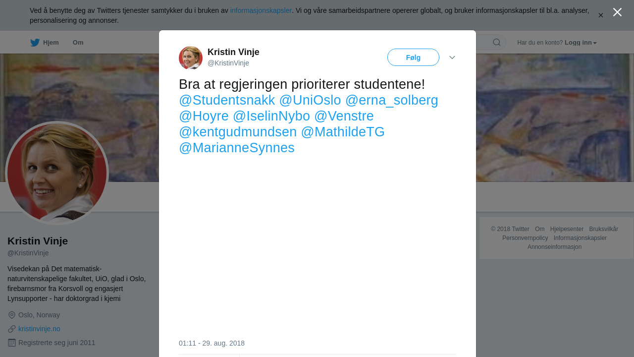 RT @KristinVinje: Bra at regjeringen prioriterer studentene! @Studentsnakk @UniOslo @erna_solberg @Hoyre @IselinNybo @Venstre @kentgudmundsen @MathildeTG @MarianneSynnes https://t.co/02g8M5gXBf