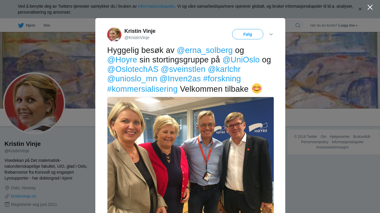 RT @KristinVinje: Hyggelig besøk av @erna_solberg og @Hoyre sin stortingsgruppe på @UniOslo og @OslotechAS @sveinstlen @karlchr @unioslo_mn @Inven2as #forskning #kommersialisering Velkommen tilbake 😊 https://t.co/marIBmrUuD