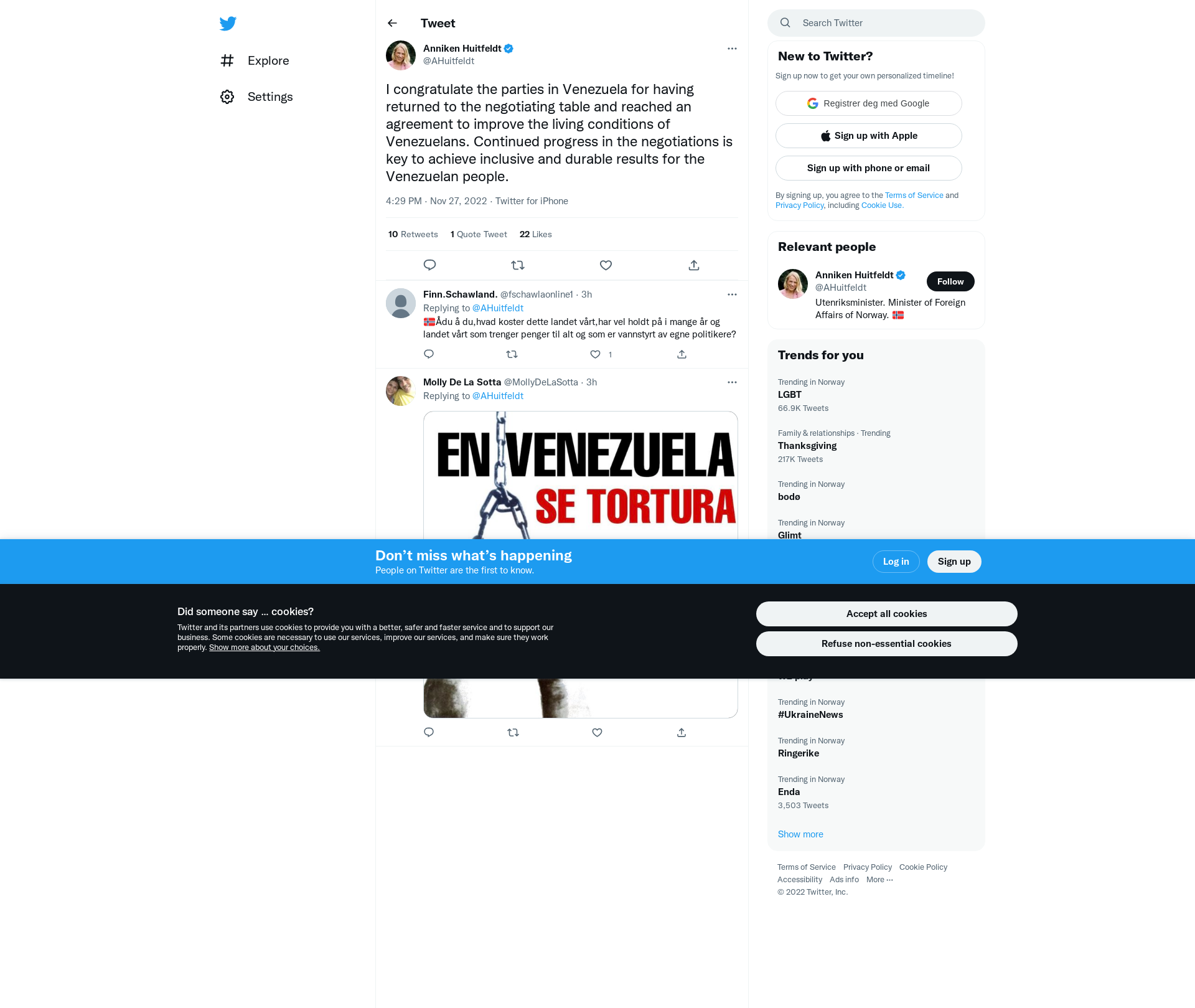 I congratulate the parties in Venezuela for having returned to the negotiating table and reached an agreement to improve the living conditions of Venezuelans. Continued progress in the negotiations is key to achieve inclusive and durable results for the Venezuelan people.