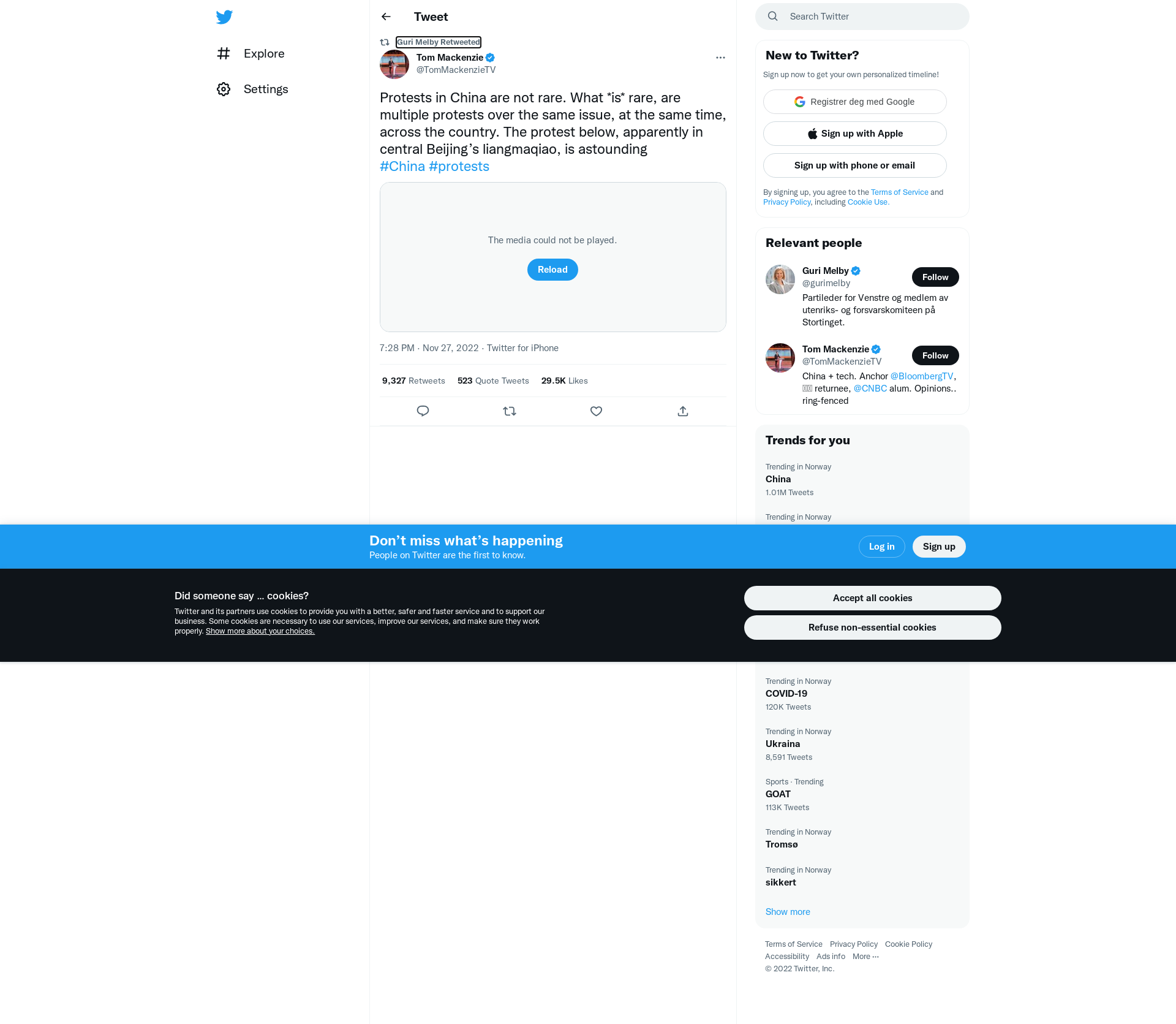 RT @TomMackenzieTV: Protests in China are not rare. What *is* rare, are multiple protests over the same issue, at the same time, across the country. The protest below, apparently in central Beijing’s liangmaqiao, is astounding \n#China #protests https://t.co/UHJCqqF1YG