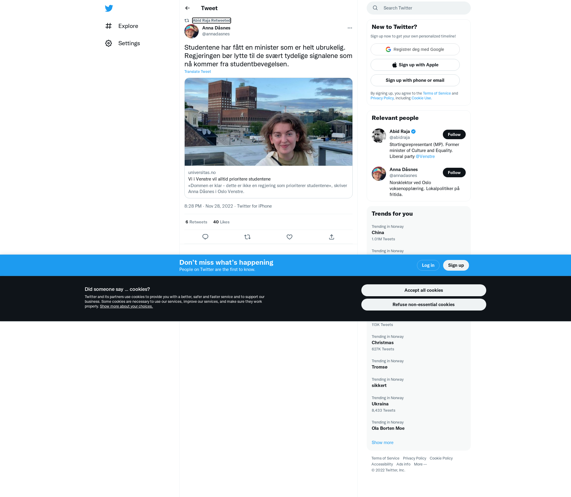 RT @annadasnes: Studentene har fått en minister som er helt ubrukelig. Regjeringen bør lytte til de svært tydelige signalene som nå kommer fra studentbevegelsen. https://t.co/dvT59kbVF3