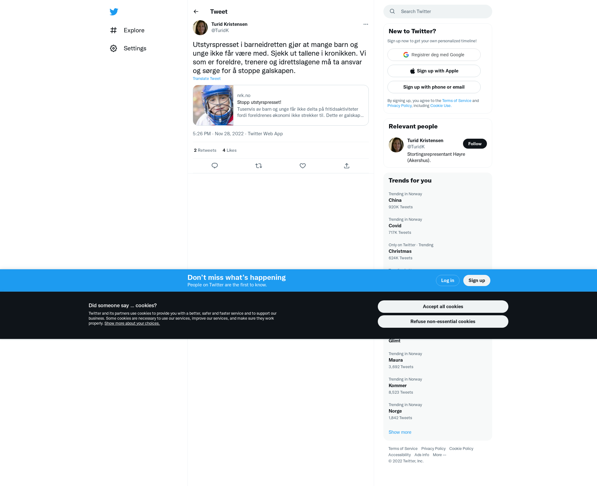 Utstyrspresset i barneidretten gjør at mange barn og unge ikke får være med. Sjekk ut tallene i kronikken. Vi som er foreldre, trenere og idrettslagene må ta ansvar og sørge for å stoppe galskapen. https://t.co/BtSzjOhfzI